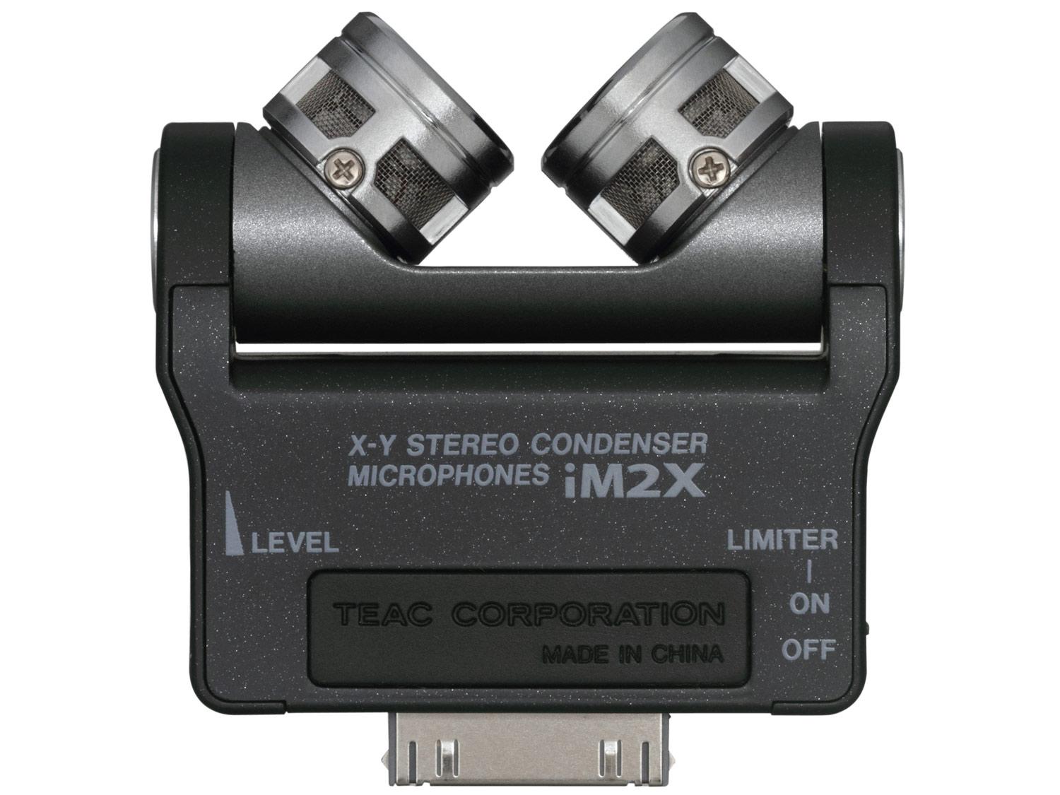 Il Tascam iM2X trasforma Apple iPhone 4, iPad o i Pod Touch 4G in un potente registratore audio in qualità CD. iM2X integra una coppia di microfoni a condensatore ed un preamplificatore di qualità, i M2X si installa velocemente utilizzando il connettore dock delle periferiche iOS. La configurazione dei microfoni è di tipo XY per una definizione stereo ottimale con ridottissime problematiche di fase. L'orientamento è regolabile nell'arco di 180 gradi per un posizionamento ideale. Al contrario di altri microfoni che utilizzando convertitori interni alle periferiche iOS, l'iM2X grazie ai suoi convertitori A/D di qualità assicura una resa lineare relativamente alla risposta in frequenza e con ridottissimi rumori di fondo. Il tipo di microfoni utilizzato è lo stesso dei modelli Tascam DR. La pressione sonora fino a 125dB consente di registrare anche concerti nei quali i volumi sono molto elevati senza problemi di distorsione. Un limiter selezionabile contribuisce inoltre a livellare i segnali riducendo la possibilità di overload degli stessi. Grazie ad un controllo del segnale in ingresso e a due meter dotati di led colorati, la regolazione dei livelli ottimali è semplificata. L'iM2X si alimenta attraverso il connettore dock, nessuna batteria opzionale è richiesta. Un ingresso USB è fornito per alimentare le periferiche iOS da computer o caricatore USB nel caso di registrazioni lunghe. L'applicazione free Tascam PCM Recorder per periferiche iOS, che consente la registrazione di due tracce, può essere scaricatadall'AppStore.