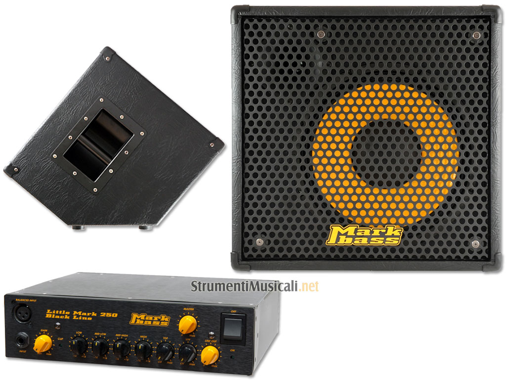 Ora il celeberrimo Little Mark II ha un fratello minore, il Little Mark 250 Black. Top della qualità e ben 250W di potenza in una testata dal peso di soli 2.6Kg. Nota che, usando un cabinet da 4 Ohm, avrai quasi la stessa potenza di una testata da 500 Watt su un cabinet a 8 Ohm. Il Markbass Club 121 è ora ufficialmente il cabinet Markbass più leggero. Si può usare in posizione monitor per sentirsi meglio sul palco. Il woofer di nuova generazione assieme al driver da 1" con tromba custom forniscono un suono incredibilmente pieno per un cabinet così piccolo.