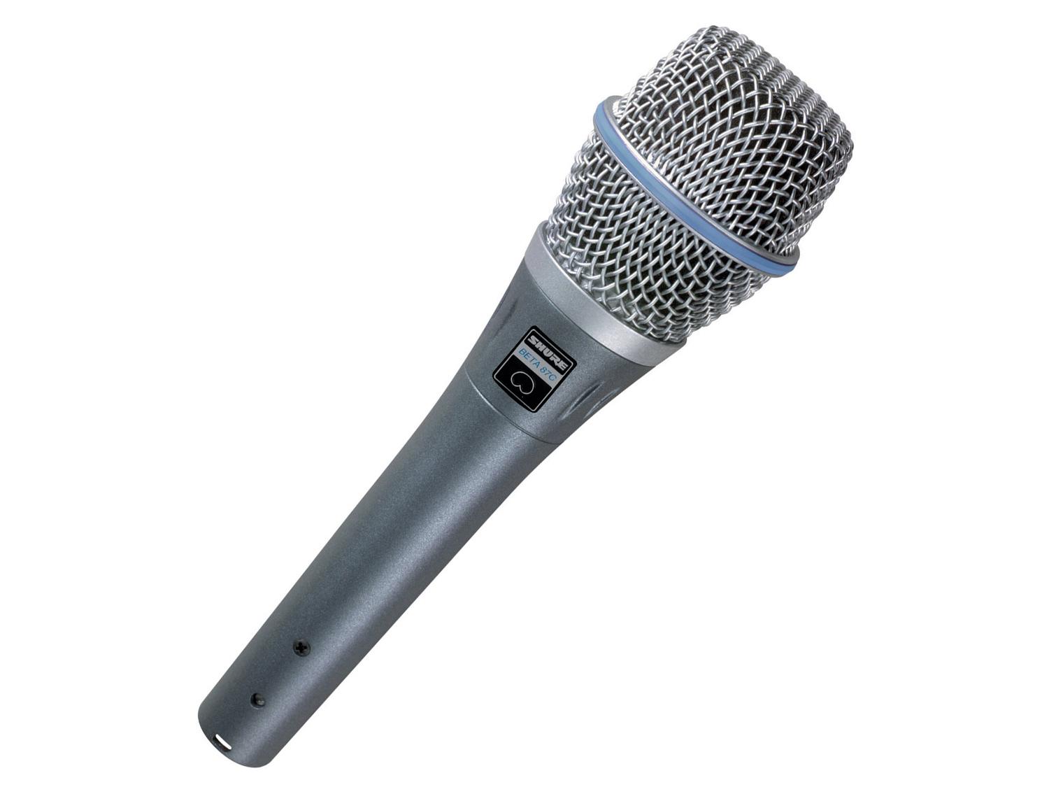 Il microfono Shure Beta 87C per voce offre prestazioni da studio ed una risposta in frequenza morbida ed estesa nelle alte frequenze, con un design a condensatore cardioide. Il microfono aggiunge calore alla risposta in frequenza e crea un ambiente ideale per il monitoraggio In-Ear. I cantanti che utilizzano sistemi di monitoraggio auricolari come lo Shure PSM, apprezzeranno come il BETA 87C respinga i suono ambientali provenienti dalla parte posteriore del microfono.