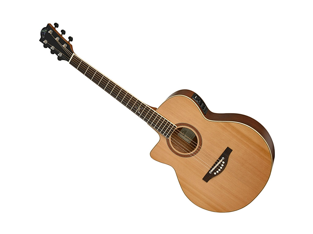 Comfort allo stato puro. Design del body EKO 018 a spalla mancante con cassa sottile, attacco del manico con l'esclusivo sistema FastLOK e ponte regolabile. Progettata per la massima versatilità e comfort. Come tutte le chitarre FastLOK l'azione delle corde può essere facilmente impostato per soddisfare le esigenze di ogni singolo chitarrista. E' dotata di un suono ricco, tavola in Cedro massello, rosetta e binding in legno, sistema di preamplificazione Fishman Presys Blend.
