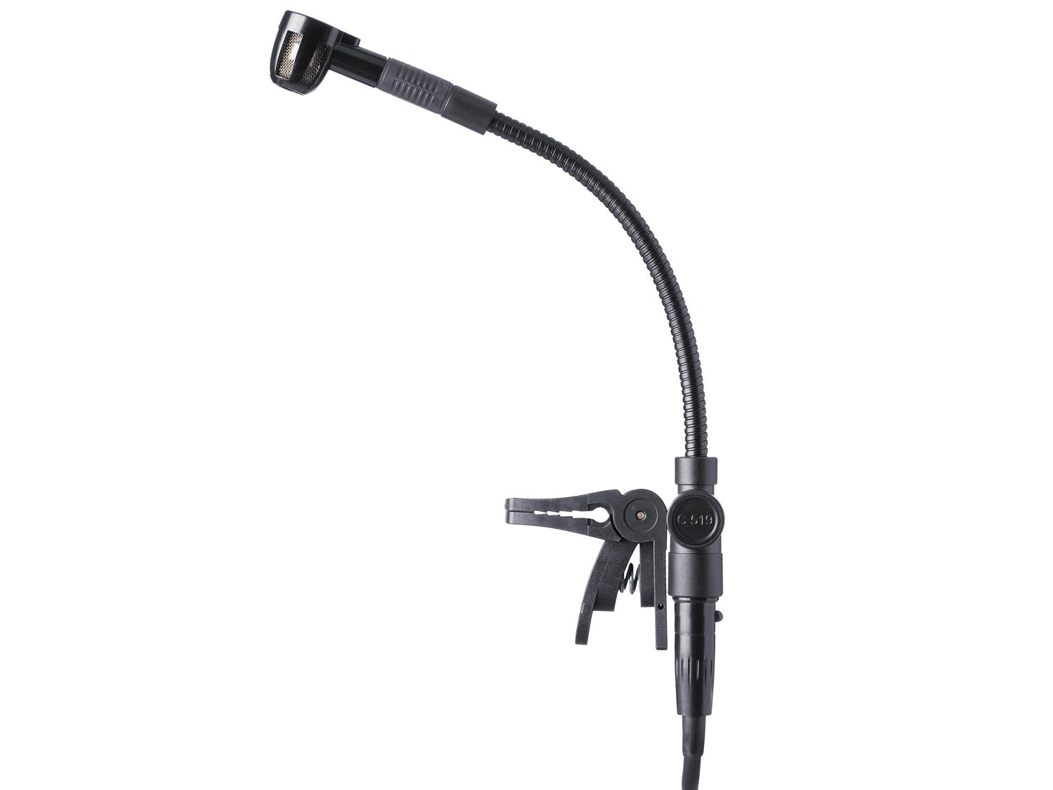 Il C 519 si fissa sulla campana di una tromba, sassofono, trombone, tuba, o di qualsiasi altro strumento a fiato (ad esempio, didgeridoo). Il diagramma polare cardioide rende il C 519 uno strumento ideale per l'uso vicino ai monitor, mentre la sua risposta in frequenza piatta offre un suono naturale, potente, e chiaro. Il C 519 M dispone di un sistema integrato taglia basse, commutabile, per regolare la risposta in frequenza del microfono al suono del vostro strumento. L'adattatore A 400 permette un facile collegamento dei trasmettitori da tasca AKG.