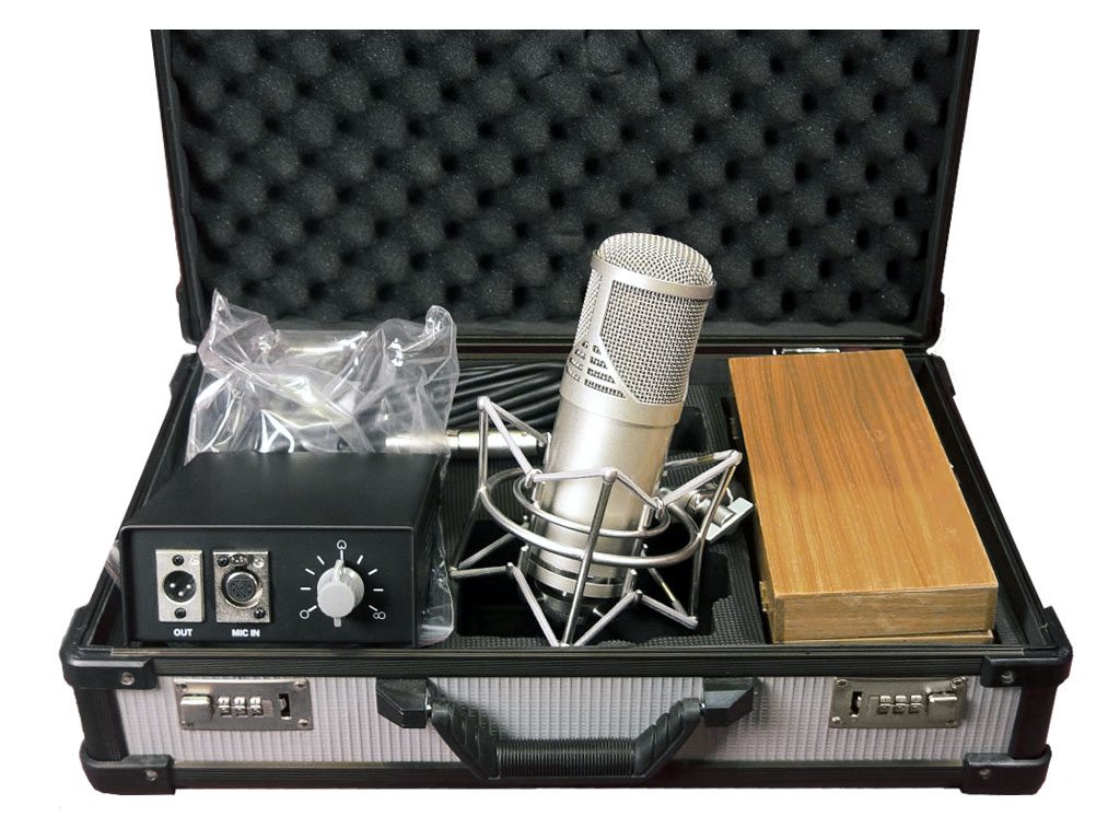 Microfono a condensatore valvolare da studio multipattern con controllo del diagramma polare dall'alimentatore.