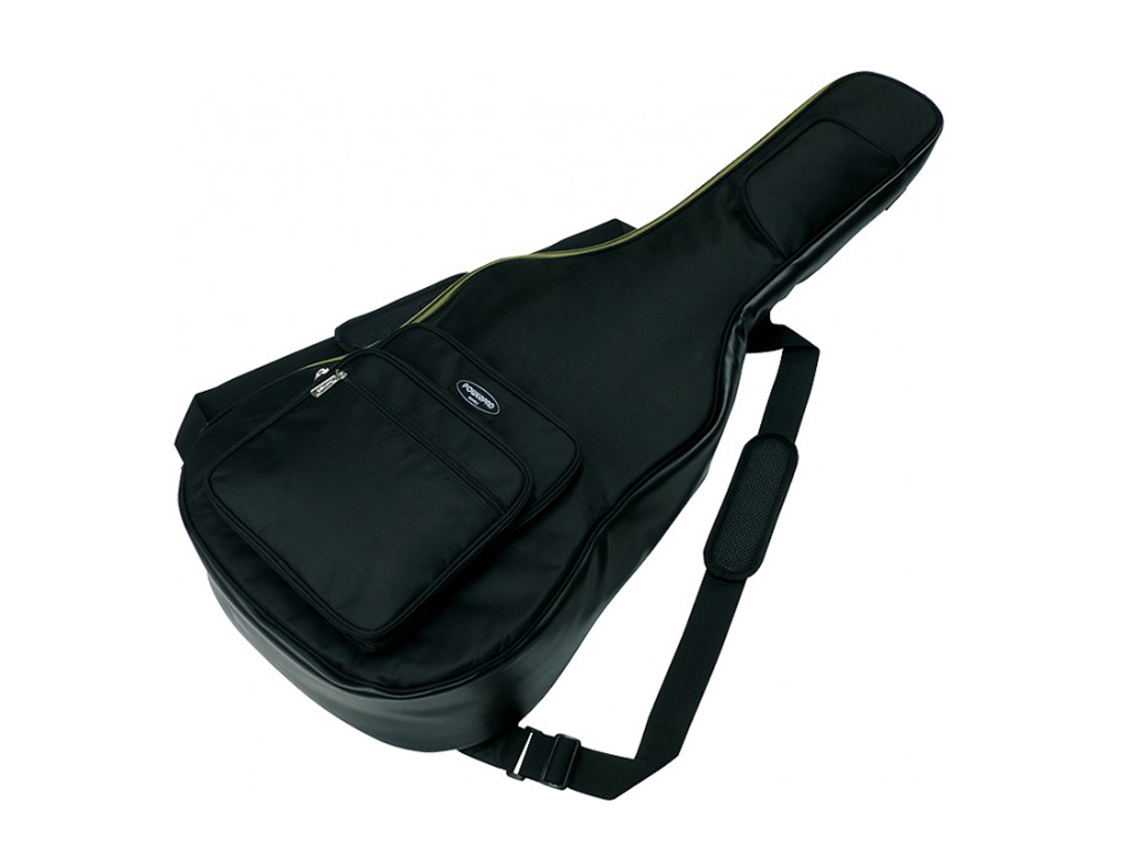 Borsa in Nylon con imbottitura di protezione per chitarra acustica jumbo. Dotata di doppia tasca anteriore e tasca per lettore CD/MP3.