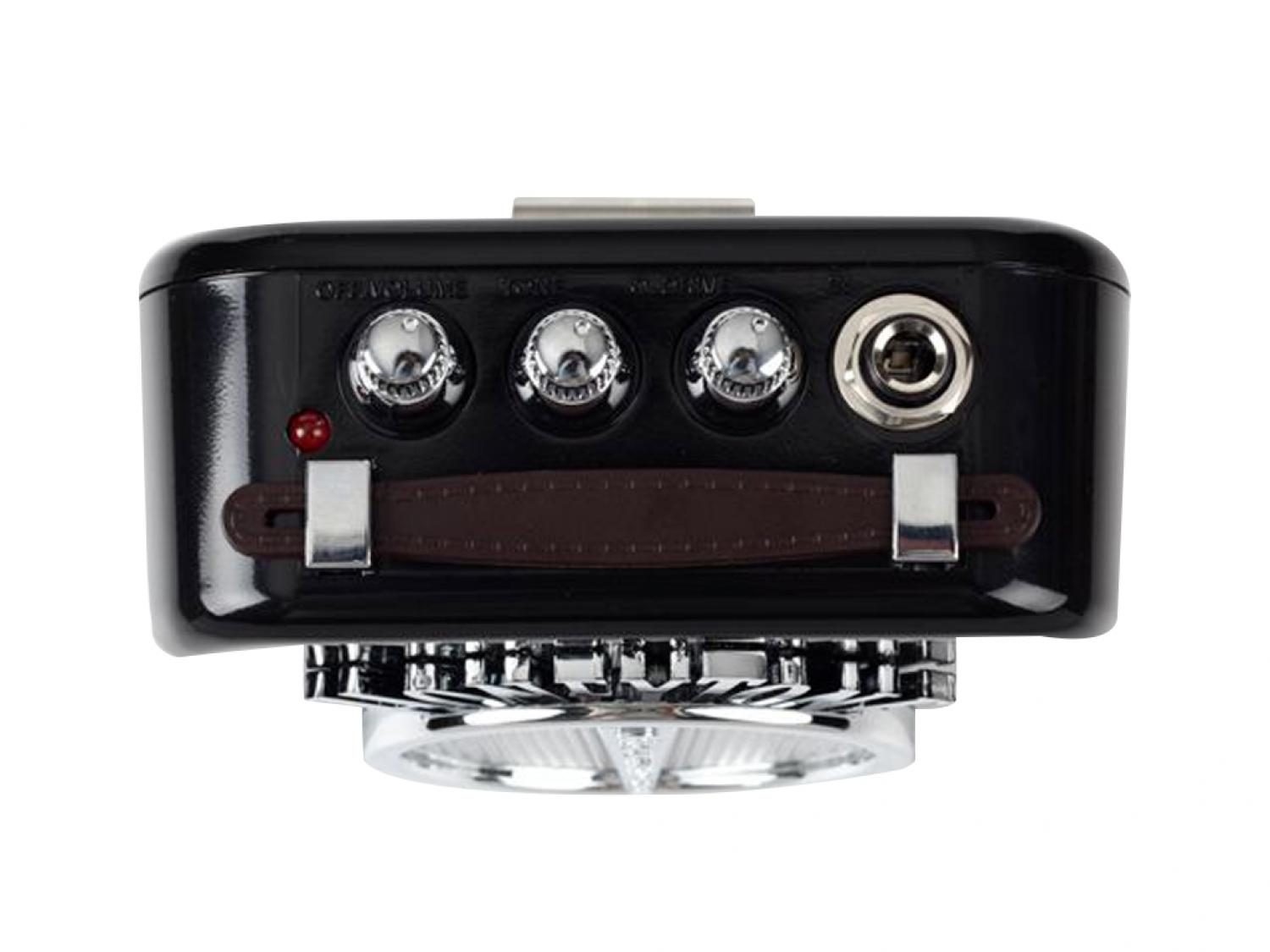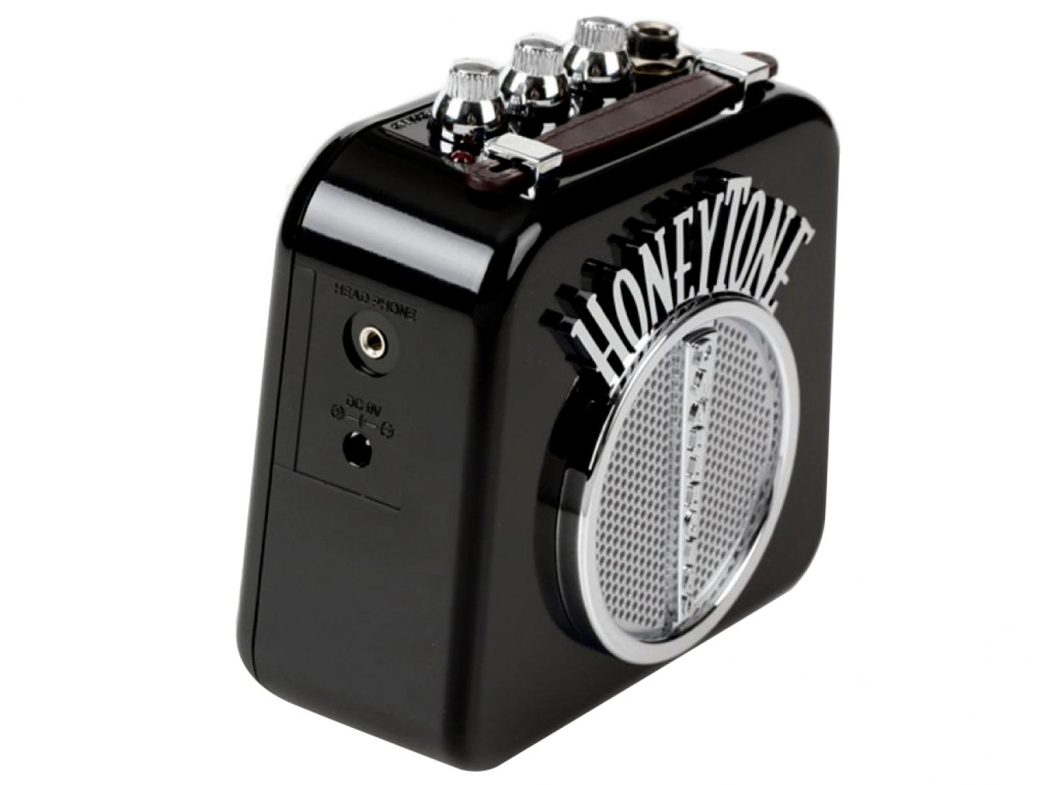 Il Mini Amp Honeytone N-10 fornisce ottimi suoni Clean e Overdrive vintage, e riesce a suonare più forte della maggior parte degli altri mini amplificatori. La maniglia di vero cuoio e la clip da cintura consentono di trasportarlo agevolmente. E' dotato di un jack per cuffie e di controlli Volume, Tono e Overdrive. Alimentato da una batteria 9 Volt (inclusa) o tramite alimentatore Danelectro DA-1 venduto separatamente.
