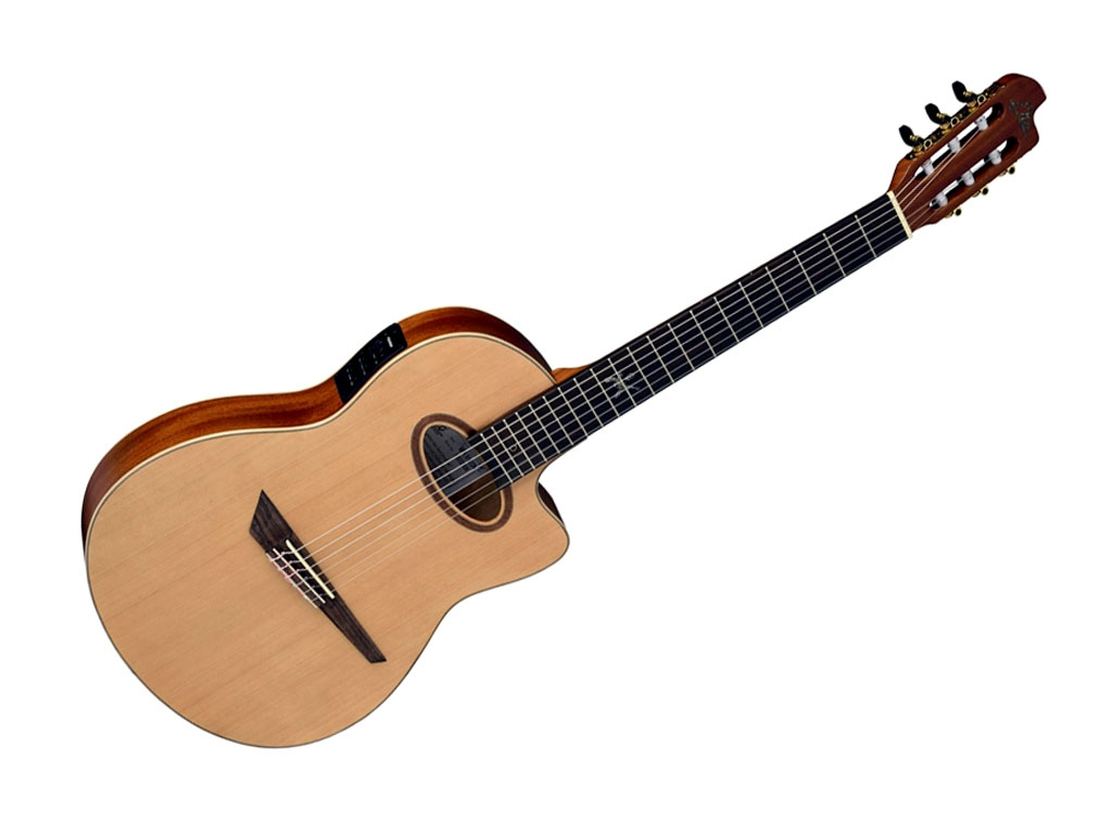 Il Trait-d'union tra la chitarra acustica e la classica. Uno strumento caratterizzato da un suono classico, progettato per performance dal vivo, specialmente per chitarristi elettrici o acustici. Un'attenzione particolare è stata rivolta all'aspetto, un capolavoro disegnato in Italia. Spessore del corpo ridotto, innesto del manico al 14° tasto, rosetta ovale, rinforzi innovativi che entrano in risonanza con il ponte. Equipaggiata con Fishman Presys Blend, micro e piezo, accordatore incorporato.