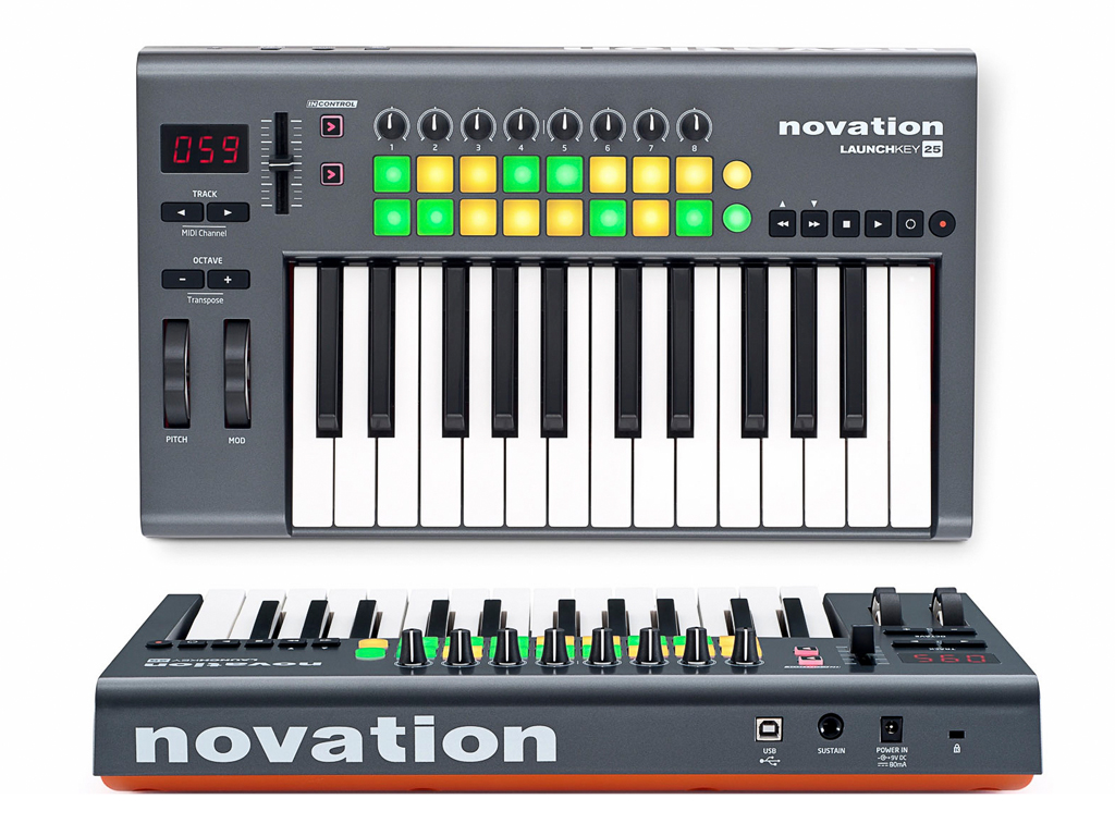 Launchkey è una superficie di controllo per DAW 'full optional' con 34 controlli hardware perfetta per l'utilizzo con Ableton Live. E' molto più di una semplice tastiera controller USB, è un potente strumento con totale integrazione hardware e software e il numero massimo di controlli disponibili per un device di questa tipologia. In aggiunta a queste funzionalità, Launchkey prevede naturalmente il normale controllo MIDI, diventando il dispositivo ideale da affiancare ad una digital audio workstation, con controllo istantaneo di volumi, panning, send delle tracce e altri parametri impostabili tramite il nuovo sistema di integrazione software Novation InControl. I 16 launch pad retroilluminati a due colori sono velocity-sensitive e possono essere utilizzati per suonare pattern ritmici, triggerare loop e molto altro ancora. Launchkey è perfettamente integrato con software di altissimo livello. Il synth Launchkey per iPad (compatibile con iPad 2 o superiore) utilizza il motore di sintesi Novation ed una nuova interfaccia touchscreen estremamente intuitiva. Si possono controllare parametri multipli del synth contemporaneamente per creare effetti unici, mentre i potenziometri della tastiera sono direttamente collegati ai controlli del sintetizzatore. La app Launchpad per iPad utilizza i pulsanti per triggerare loop e include un'ampia gamma di effetti.