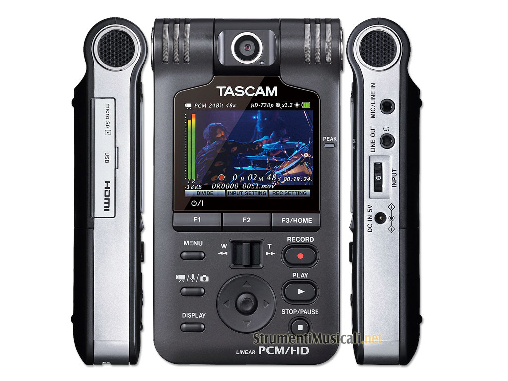 Il TASCAM DR-V1HD è una combinazione di un Video Recorder HD e di un Audio Recorder PCM lineare di alta qualità. TASCAM ha rivoluzionato le registrazioni ambientali e domestiche per decenni e, con l'uscita del DR-V1HD, ha rilasciato un altro prodotto di qualità superiore. TASCAM è sempre stata incentrata sulla creazione prodotti versatili e di facile utilizzo, e con questo in mente, TASCAM ha fornito una telecamera ed un microfono con 180 gradi di rotazione nella parte superiore della macchina con un set di funzionalità e di menu specifici ("White Balance " e modalità "Still").