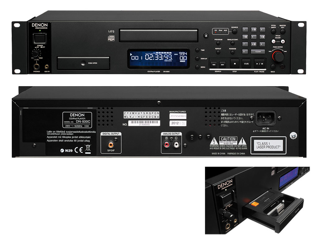 Il DN-500C da Denon Professional è un lettore professionale CD completo di dock iPod completamente retrattile, capacità di controllo del pitch e selezione diretta del brano tramite il tastierino numerico frontale. Questo evento segna il secondo prodotto della nuova gamma 500 che rappresentano il patrimonio di Denon Professional in prodotti di alta qualità, focalizzato sulle tecnologie audio moderne.