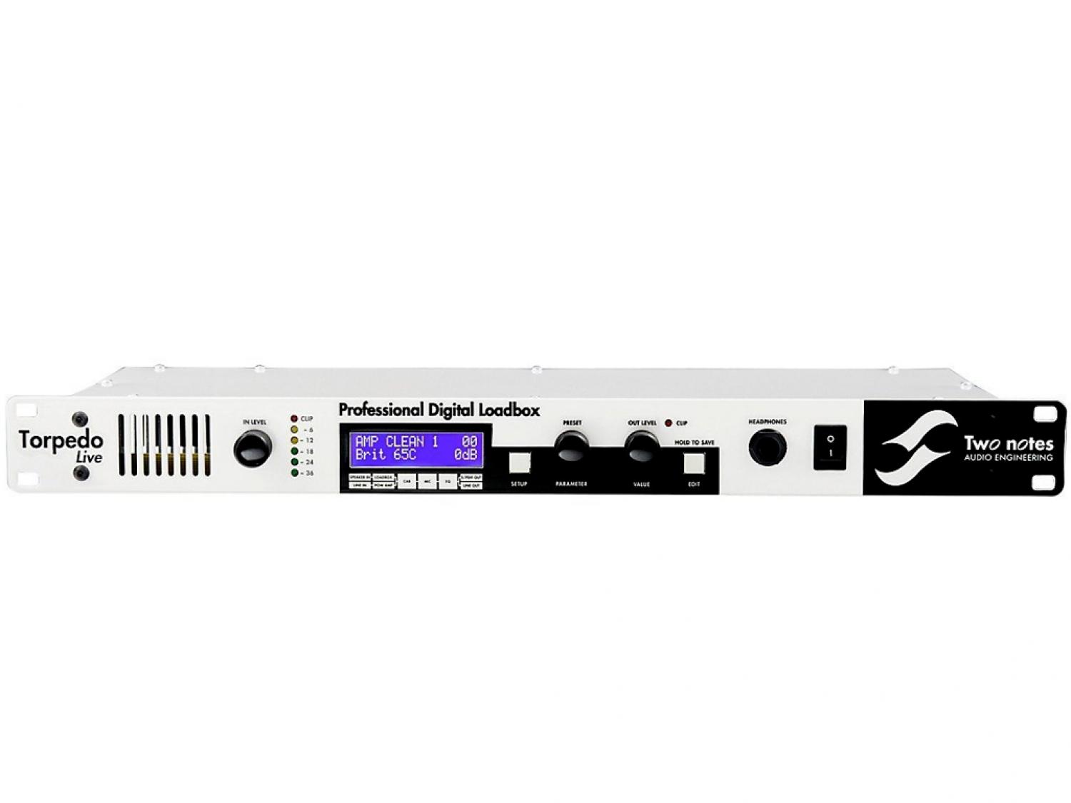 Il Torpedo Live è innanzitutto un loadbox digitale, vale a dire la combinazione di un loadbox analogico reattivo a 100W RMS e un potente DSP a 32 bit. Il Torpedo Live nasce dal fratello maggiore Torpedo VB-101, il primo loadbox digitale al mondo. Con il Torpedo Live avete sempre a disposizione 32 cabinet a scelta all'interno della collezione di cabinet Two Notes in continua evoluzione (ad oggi sono disponibili più di 45 cabinet). Il tutto all'interno di una singola unità rack. Otto microfoni accuratamente selezionati e pronti per catturare il vostro miglior riff di chitarra. Che vi serva il classico suono di un microfono dinamico, la morbidezza di un nastro o la fedeltà di un microfono a condensatore, Torpedo Live li mette a disposizione tutti. Volete un suono più definito? Avvicinate di più il microfono al cono. L'esclusiva tecnologia proprietaria di misurazione dei microfoni e dei cabinet sviluppata da Two Notes simula in maniera accurata il suono e il processo di un cabinet microfonato in uno studio di registrazione professionale. Per coloro che utilizzano un preamplificatore per chitarra, Torpedo Live coniene le emulazioni di finali valvolari per chitarra sviluppate per il Torpedo VM-202. In questo modo potete mantenere semplice e leggero il vostro setup. Il controllo via MIDI rende il Torpedo Live ancora più versatile. Torpedo Live consente di caricare fino a 512 risposte ad impulsi (di terze parti o file creati dall'utente). La funzione "Quick Preview" del software Torpedo Remote (Mac/PC) consente di navigare la libreria di IR sul computer mentre suonate con il Torpedo Live.