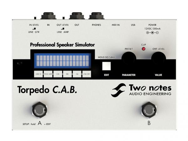 Il Torpedo C.A.B. è un simulatore di cabinet di altissima qualità in formato stompbox. Non è un loadbox, ma contiene tutte le straordinarie funzioni del Torpedo Live ed ha uno stadio di ingresso progettato appositamente per ricevere i segnali dai pedali. La tecnologia Torpedo consiste nella simulazione fedele del comportamento degli altoparlanti del cabinet ottenuta utilizzando la convoluzione. La simulazione del Torpedo riproduce anche le più piccole sfumature del comportamento del cabinet, come la risposta in frequenza e la distorsione. Potete spostare i microfoni all'interno dello studio virtuale grazie alla sintesi IR (32 slot ed oltre 45 cabinet disponibili)