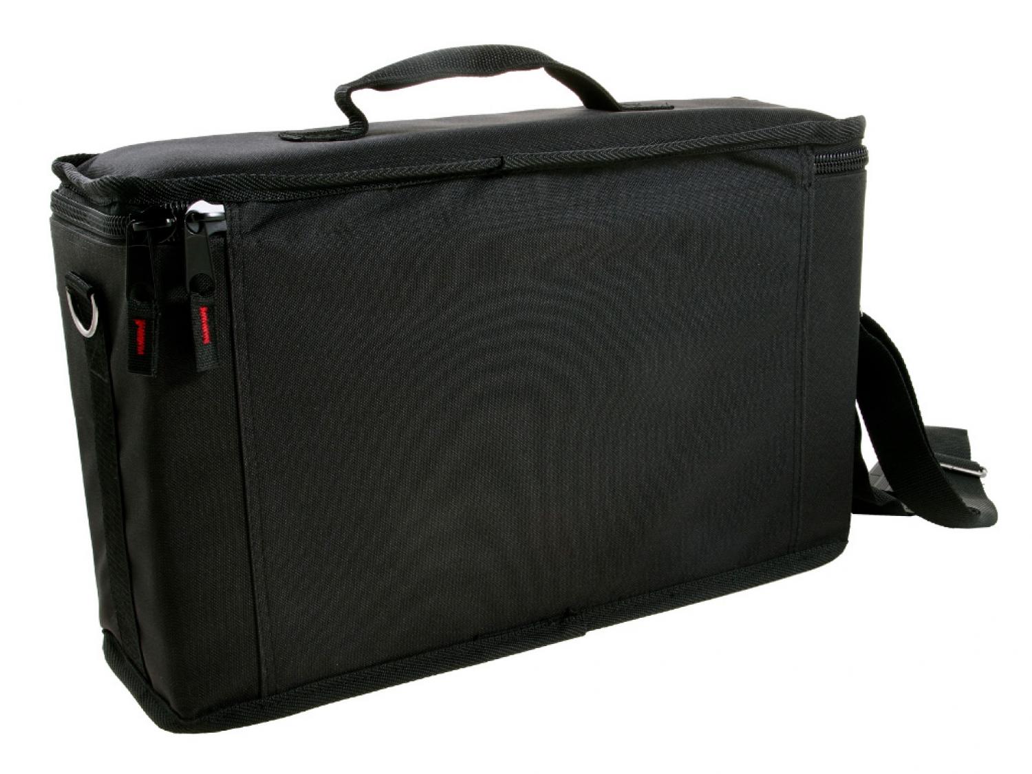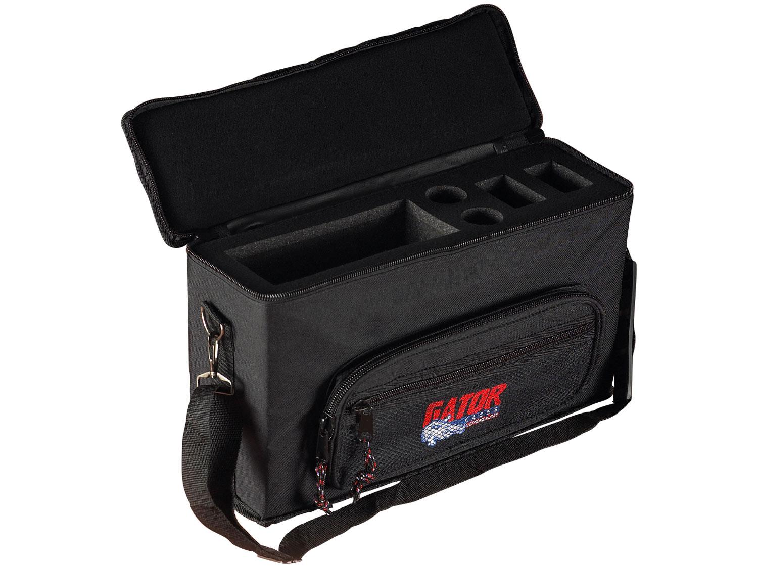 Borsa in robusto Nylon 600D per il trasporto di due microfoni wireless completi.