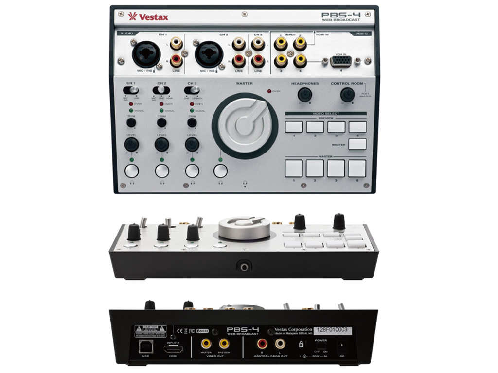 Vastax PBS-4 è una soluzione all-in-one, facile da usare, per trasmettere fonti video e audio in diretta su Internet. Diverse sorgenti audio e video possono essere mixate insieme, e inviate istantaneamente on-line in streaming. L'uscita USB invia audio e video al computer e a qualsiasi servizio di streaming, inclusi Ustream, Justin.tv, Livestream ed altri. Il PBS-4 è compatto, facile trasporto, e dispone di una vasta gamma di connessioni per le fonti audio e video. La semplice interfaccia e la facilità di configurazione lo rendono l'ideale per spettacoli musicali, musica dal vivo, DJ con mix video, eventi aziendali, seminari, e-learning, tutorial di videogiochi, feste di matrimonio, studi televisivi casalinghi, web radio e qualsiasi tipo di contenuto che si desideri condividere in diretta on-line. Il Vestax PBS-4 può essere utilizzato anche insieme ad un software di acquisizione audio e video, per registrare i tuoi contenuti dal vivo.