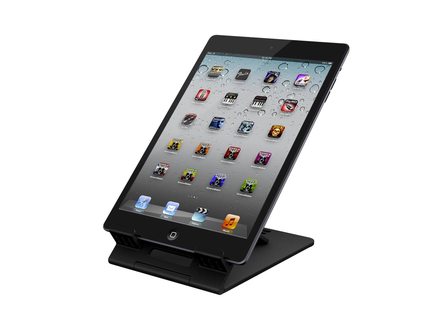iKlip Studio è un supporto da tavolo regolabile per iPad mini progettato specificamente per i musicisti. iKlip Studio mantiene il tuo iPad mini saldamente sulla scrivania dello studio, o altre superfici, mentre si utilizzano applicazioni musicali o altro. L'orientamento flessibile permette all'iKlip Studio mini di inclinarsi da un angolo molto piccolo sino ad un posizionamento quasi verticale