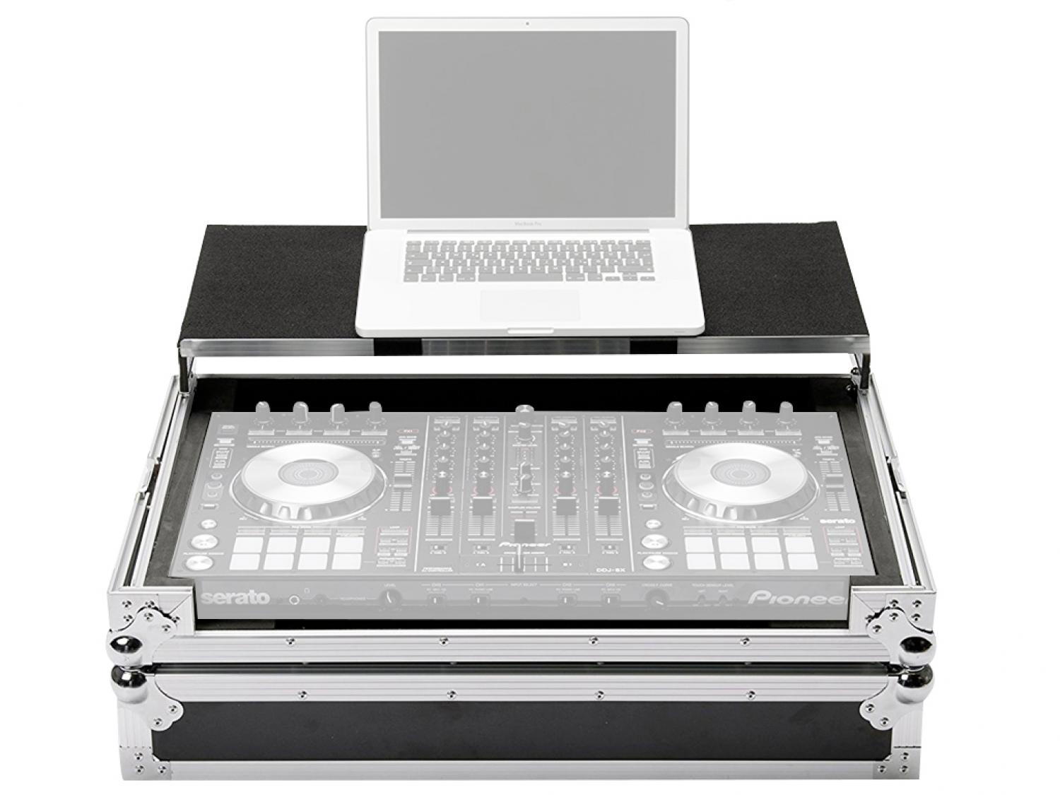 Realizzato per contenere il nuovo Controller DJ Pioneer DDJ-SX o DDJ-SX 2 ed un computer portatile. Costruito in laminato da 9mm con rivestimento in vinile, profili in robusto alluminio e solide chiusure a farfalla, garantisce un trasporto sicuro della workstation. Grazie alla piattaforma a scorrimento per laptop ed alla comoda porta di accesso ai cavi, l'installazione sarà pronta per l'azione in un attimo.