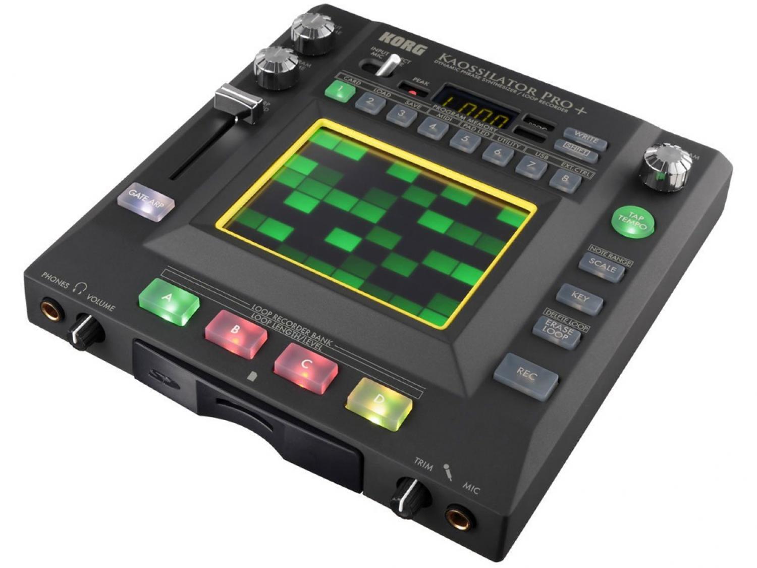 Korg Kaossilator Pro+ è una versione aggiornata dell'hardware Kaossilator PRO, che si allinea alle direttive ERP (Energy Related Product). Con l'occasione Korg ha incrementato il numero di preset disponibili portandoli a 250, di cui 62 completamente nuovi, tra i quali ben 26 dedicati a suoni e pattern di batteria elettronica. Migliorata anche l'interoperabilità con Kaossilator 2, con il quale è possibile importare e esportare i loop generati. Korg Kaossilator Pro+ permette di riprodurre i suoni contenuti mediante il touch PAD, il quale emula una tastiera ed è programmabile per coprire tutto il range di note, oppure un'unica ottava per una maggior precisione durante le performance live. Potremo impostare 35 scale differenti, ognuna suonabile in qualsiasi tonalità. Utilizzando il fader alla sinistra del pad, potremo accedere all'impostazione dell'arpeggiatore integrato per variarne dinamicamente risoluzione e tempo di Gate. Le frasi musicali riprodotte con Kaossilator Pro+ sono registrabili e riproducibili in Loop.