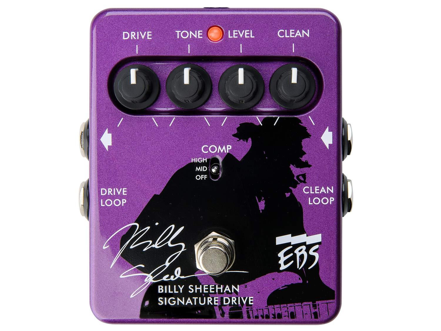 Il pedale Billy Sheehan Drive è stato sviluppato da EBS in stretta collaborazione con lo stesso Billy. Si basa sul concetto di miscelare insieme un segnale pulito con uno distorto per preservare le basse frequenze e trovare il giusto equilibrio tra distorsione e definizione. Il Drive Billy Sheehan offre illimitate possibilità di modellazione del suono pre-post mix, grazie alla presenza di un Loop Clean e un Loop Drive per inserire qualsiasi altro effetto che si desideri all'interno dell'unità. La possibilità di aggiungere il compressore consente di mantenere la differenziazione delle note chiaramente udibile anche con suoni pesantemente distorti. Le modalità di compressione disponibili sono tre, High, Mid e Off. Per l'impostazione Mid è disponibile un ulteriore controllo interno che consente di impostarne il parametro "Ratio" ed un ulteriore potenziometro per impostare il Livello. Un ulteriore trimmer interno consente inoltre di impostare la soglia di compressione Threshold.