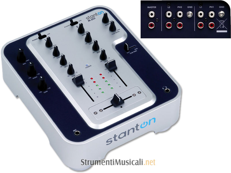 • 2 canali linea con alti, medi, bassi e gain +9/-26 dB su ogni canale