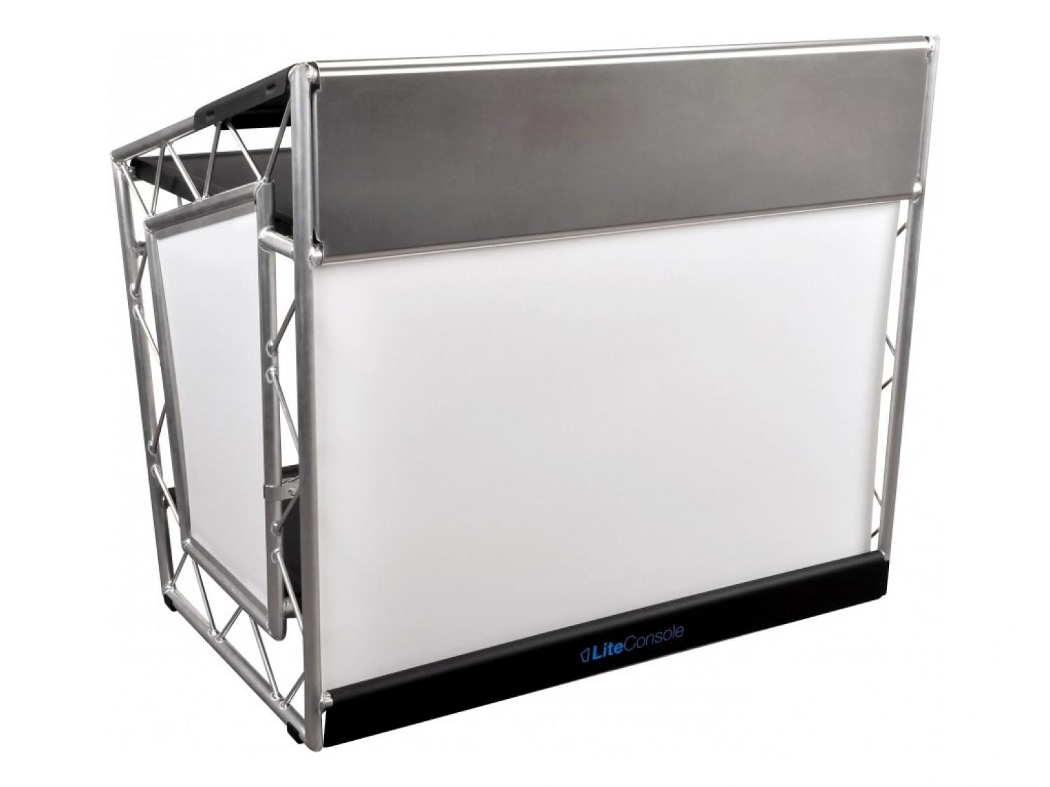 La LiteConsole XPRS è una delle console per DJ più usate nell'installazione fissa e mobile, ed è realizzata da una delle più importanti e famose aziende di americane in alluminio. La particolarità di questo modello è data dalla stabilità abbinata al peso contenuto della struttura in alluminio (circa 10kg), cosa che la rende trasportabile grazie anche alla borsa fornita in dotazione. Tutti i pannelli sono personalizzabili con incisioni al laser o stampe digitali. Grazie alle proprie dimensioni, il pannello frontale può ospitare uno scherno fino a 50" per dare tridimensionalità all'intera struttura.