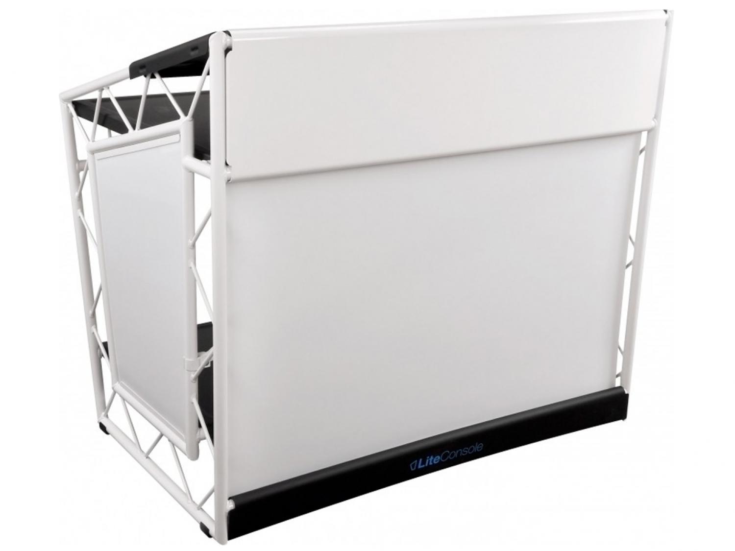 La LiteConsole XPRS è una delle console per DJ più usate nell'installazione fissa e mobile, ed è realizzata da una delle più importanti e famose aziende di americane in alluminio. La particolarità di questo modello è data dalla stabilità abbinata al peso contenuto della struttura in alluminio (circa 10kg), cosa che la rende trasportabile grazie anche alla borsa fornita in dotazione. Tutti i pannelli sono personalizzabili con incisioni al laser o stampe digitali. Grazie alle proprie dimensioni, il pannello frontale può ospitare uno scherno fino a 50" per dare tridimensionalità all'intera struttura.