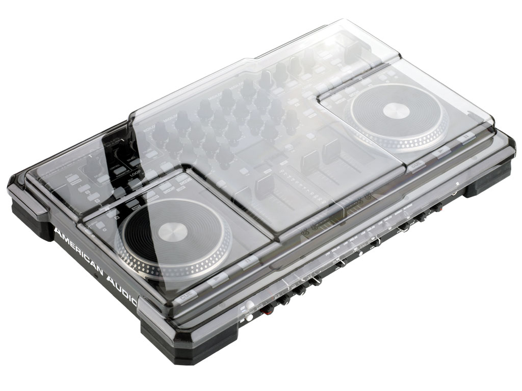 Copertura protettiva in plastica trasparente realizzata per il controller American Audio VMS4. Il coperchio si adatta perfettamente al profilo senza nasconderne il design.