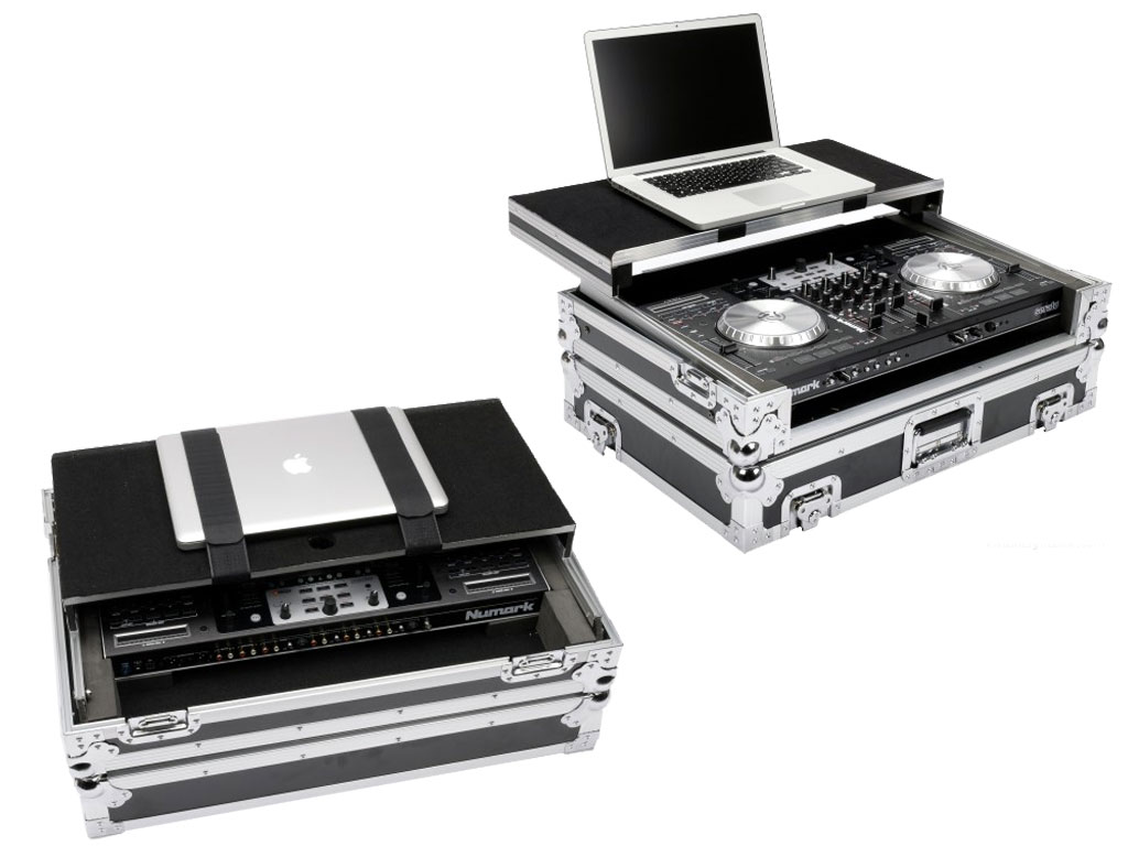 Flight case personalizzato per contenere il DJ-Controller NUMARK NS6 ed un laptop fino a 17". Realizzata in multistrato da 9 millimetri rivestito in vinile, profili in robusto alluminio e resistenti chiusure a farfalla, questo case fornisce la massima protezione al tuo controller. Grazie alla piattaforma scorrevole per laptop integrata ed alla comoda porta di accesso ai cavi, l'installazione è pronta per l'azione in pochissimo tempo.