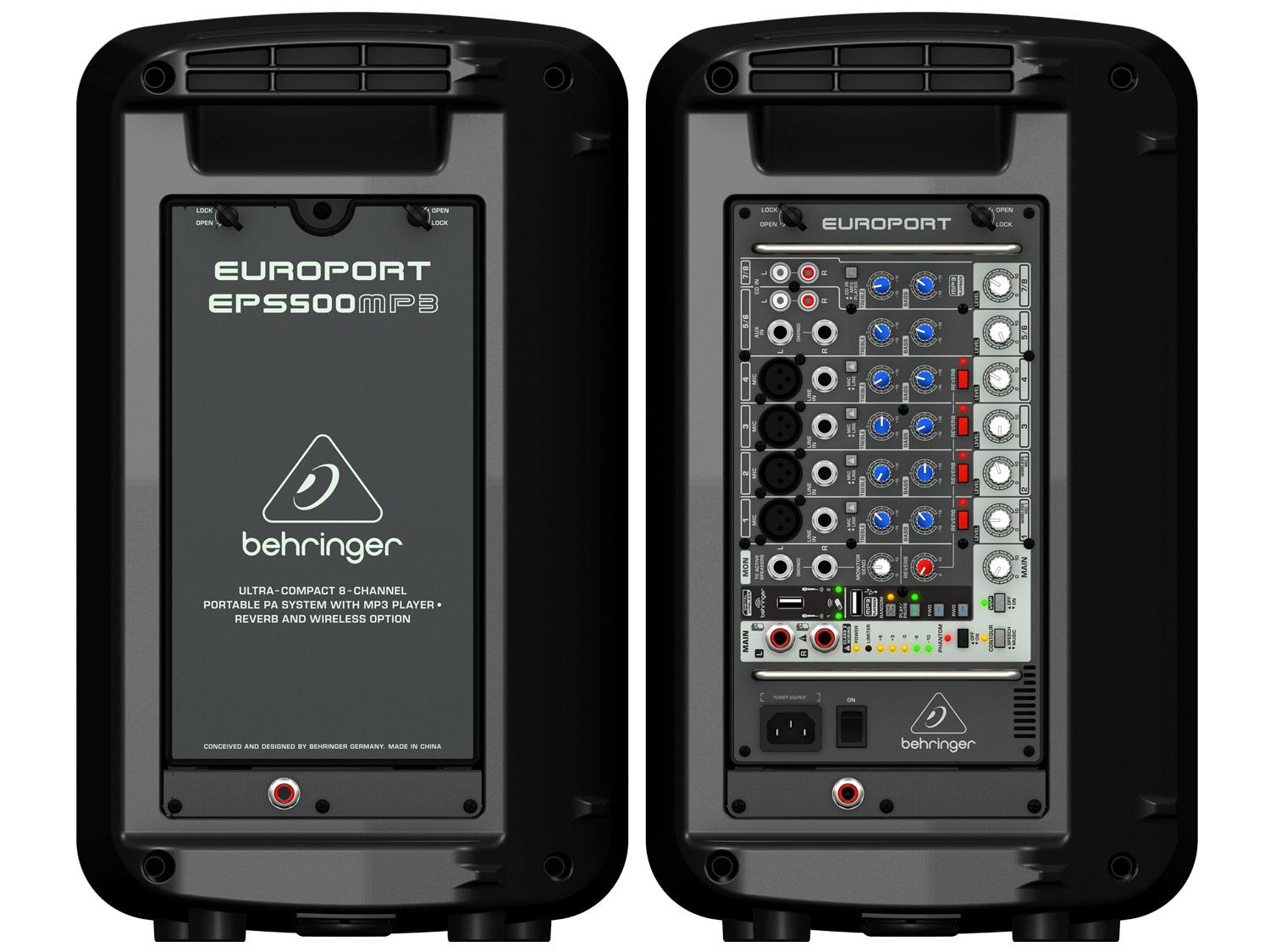 Il nuovo Beghringer EPS500 MP3 si installa in meno di cinque minuti e offre prestazioni articolate, alta fedeltà, e pesa solo 18,8kg. Con il suoi due amplificatori da 250 Watt e gli altoparlanti a 2 vie progettati su misura, Il Behringer EPS500MP3 può facilmente coprire un ambiente di dimensioni medie-grandi con un suono cristallino e vibrante.
