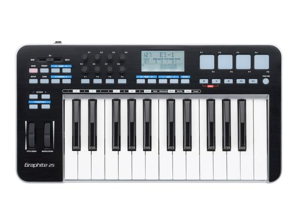 Il Controller Samson Graphite 25 USB MIDI offre tutto il controllo delle performance e della produzione necessario per ottenere il massimo dal tuo software musicale. Con una combinazione di una intuitiva tastiera a 25 tasti semi-pesati, un set di funzionalità che è utile e facile da usare, il Graphite 25 è un elegante e potente strumento che permette di esprimere le tue idee musicali più dinamiche. In combinazione con un iPad utilizzando iPad Camera Connection Kit o USB Camera Adapter (non inclusi) il Graphite 25 è un ottimo strumento per fare musica in movimento.