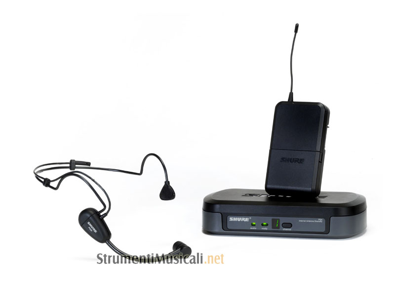 Radiomicrofono composto da trasmettitore Body Pack PG1 + microfono ad archetto PG30 + ricevitore PG4.