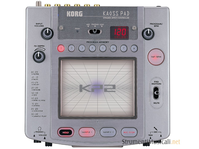 Al tocco delle vostre dita....The touch of your finger Il concetto di questo strumento e' estremamente semplice! Al movimento delle vostre dita sulla superficie del KP2 verranno " legati" tutti i piu' sofisticati controlli degli effetti a disposizione! Il semplice movimento di un glissato sulla superficie potra' riprodurre effetti che non sareste in grado di riprodurre in nessun altro sistema o controller!