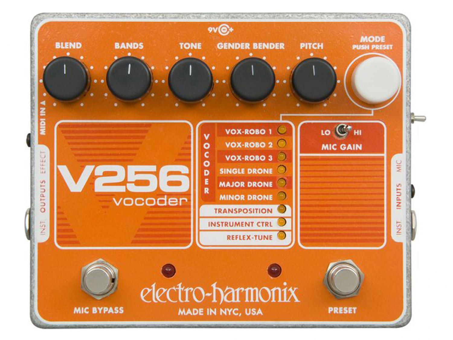 Il V256 è un vocoder versatile e facile da usare con il vantaggio aggiunto di essere in un formato a pedale compatto. I musicisti non hanno più bisogno grandi attrezzature a rack, plugin per computer, o grandi tastiere per ottenere una vasta gamma di suoni vocoder classici e moderni così come alcuni effetti molto particolari di trasposizione vocale. Il V256 contiene dei sintetizzatori interni per un facile vocoding senza strumenti esterni.