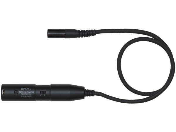 Adattatore per alimentazione Phantom con connettore XLR per microfoni MicroMic L con switch integrato roll-off per i bassi.