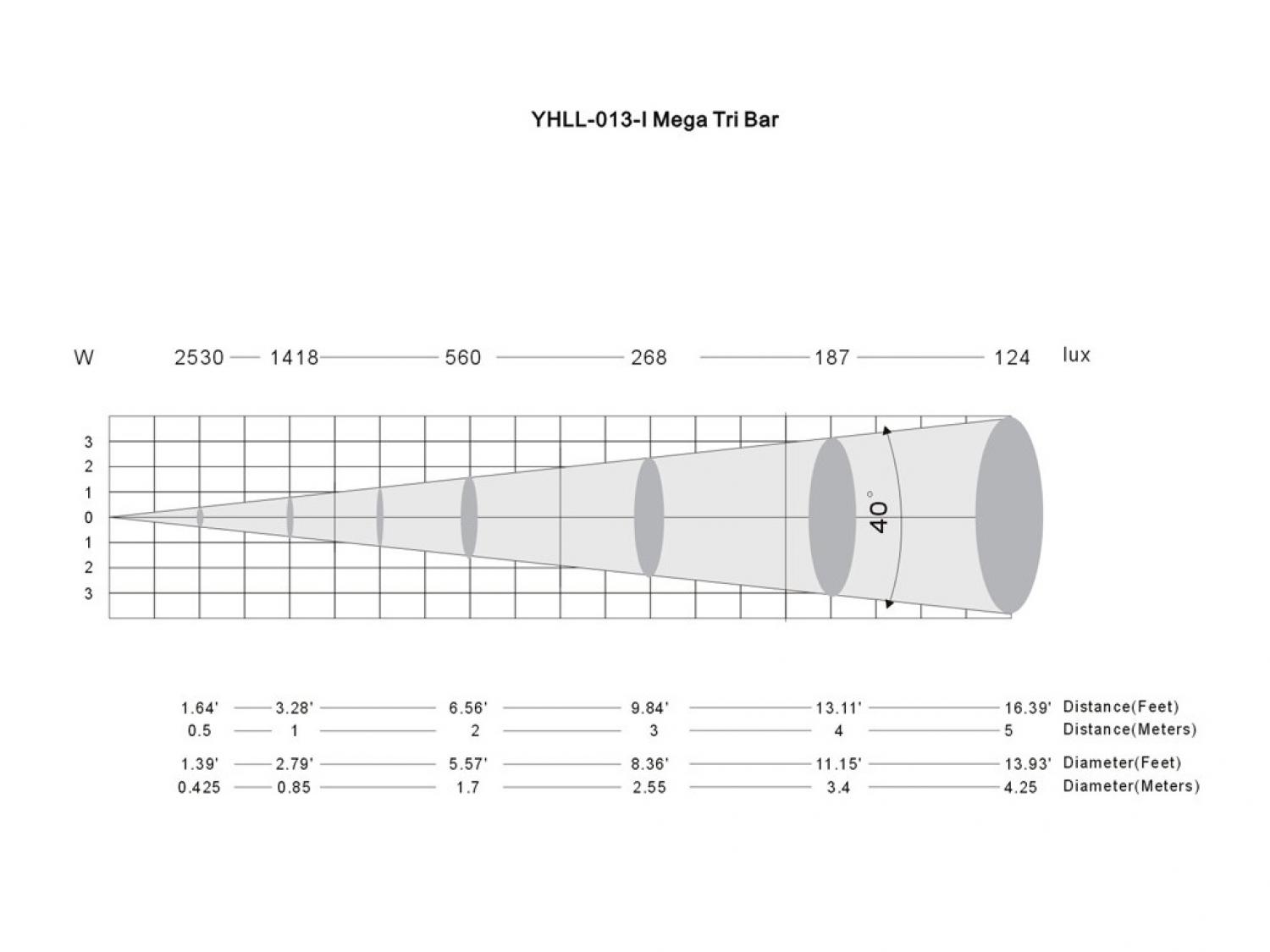 La Mega TRI Bar di ADJ da interno dispone di 18 LED da 3 watt, 3 in 1, con una durata nominale di 60.000 ore. La nuova tecnologia tri-colore rende possibile contenere una combinazione di tre LED, rosso, verde e blu da 1 watt per ogni lente. Questa innovazione offre agli utenti vantaggi enormi rispetto ai LED monocromatici, tra cui un migliore miscelazione dei colori, eliminazione delle ombre multi-colore, ed un campo molto più luminoso e uniforme.