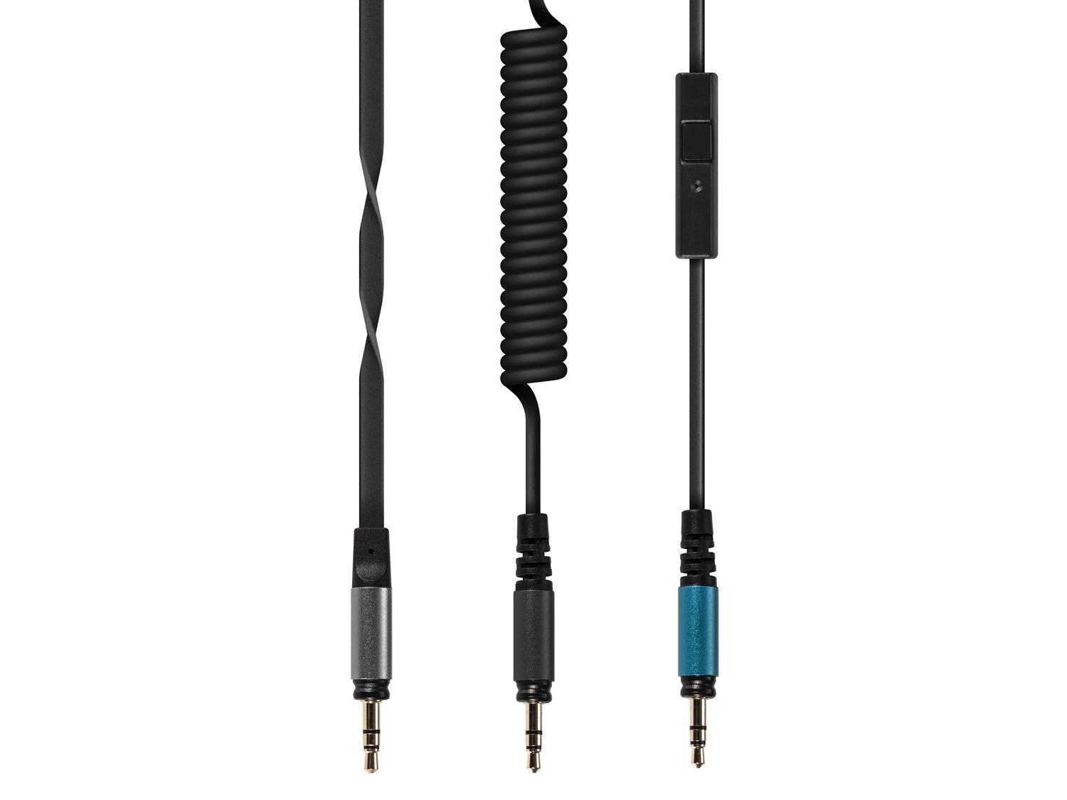 • Cavi: cavo 1,2m con controllo per smartphone, cavo piatto 1,2m, cavo a spirale 3,0m