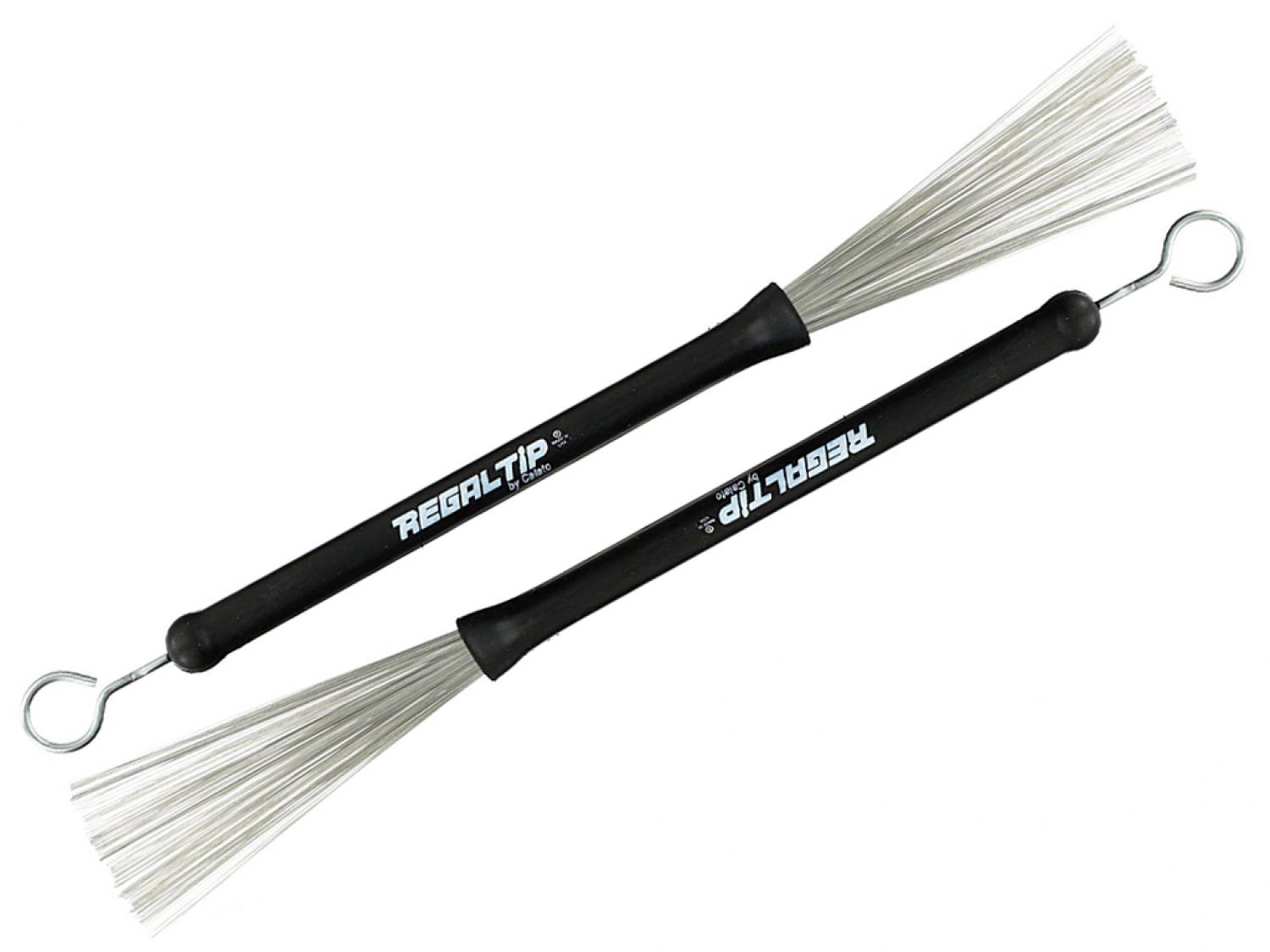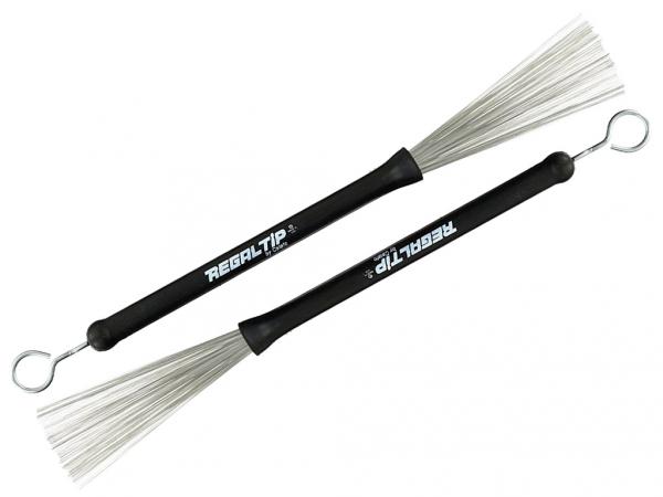 Le Regal Tip Classic sono le spazzole più vendute al mondo. Queste spazzole metalliche hanno una resistente impugnatura in gomma ed una ampiezza regolabile brevettata. Sono dotate di anelli di metallo sui manici per effetti sonori aggiuntivi. Ritraendo le spazzole, quando non in uso, si impedisce che si pieghino o danneggino.