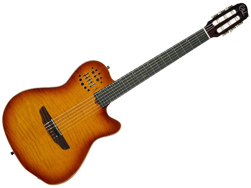 • Equalizzatore Godin Custom con controlli indipendenti Synth e controllo Volume/Treble/Mid/Bass per suono acustico