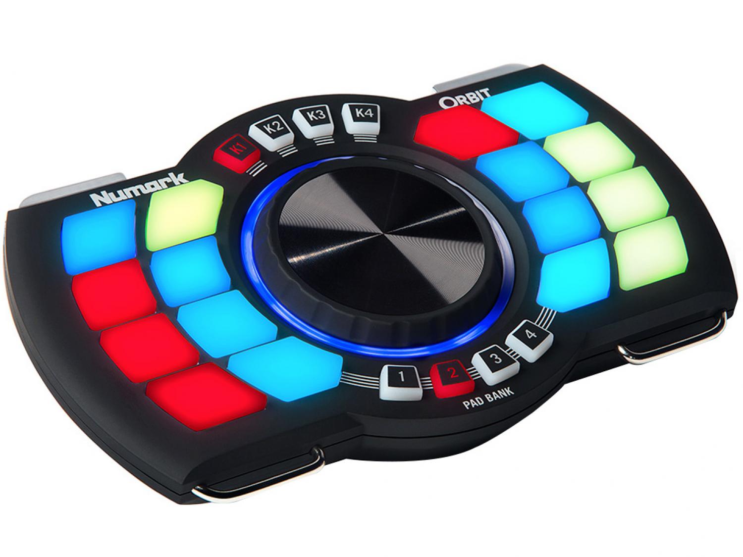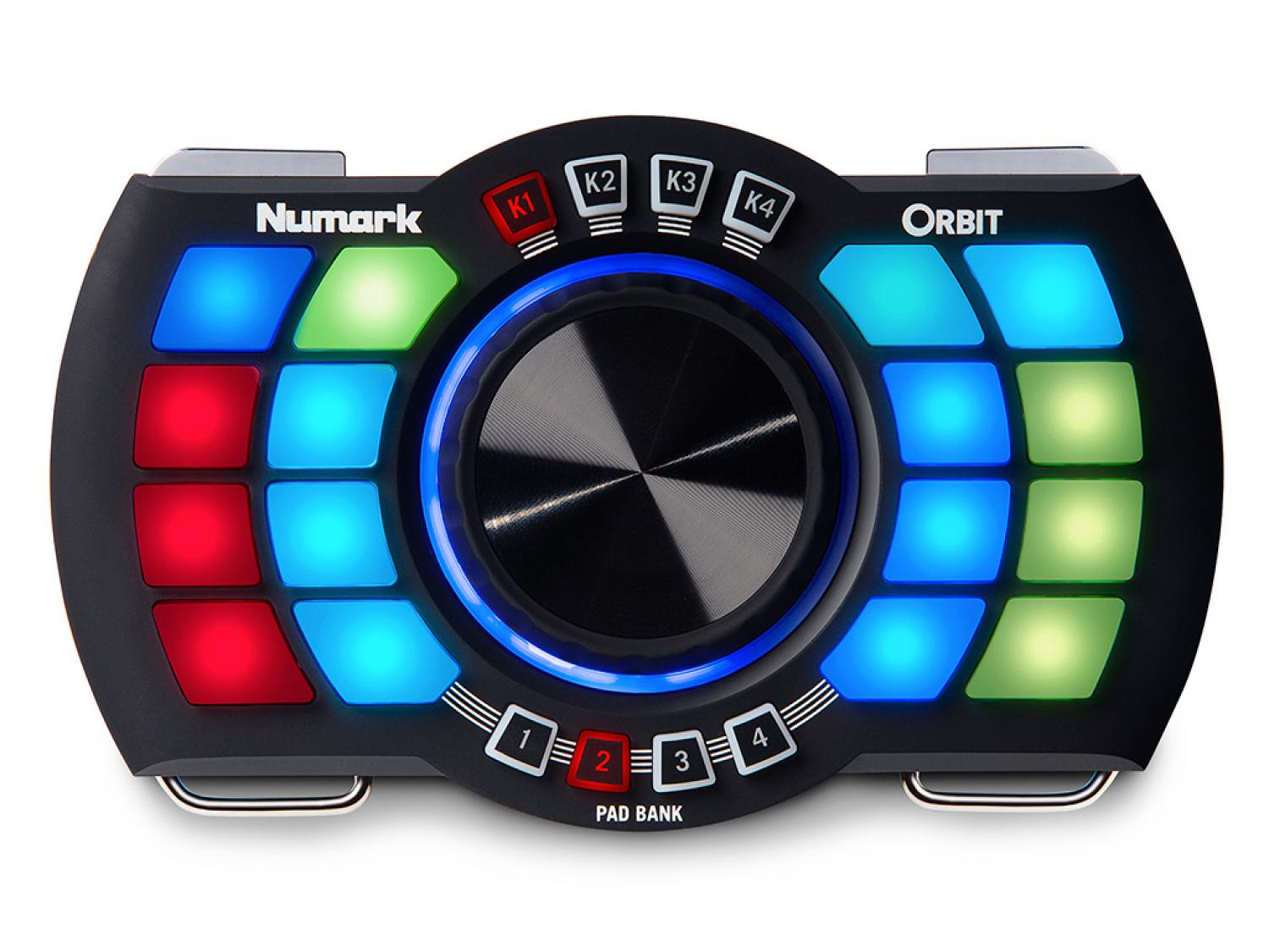 Numark Orbit è un MIDI controller Wireless dotato di 16 pad retroilluminati articolati su 4 banchi (per un totale di 64 pad) organizzati in un layout a due deck: 8 per lato. Al centro dei pad troviamo una wheel con superficie in alluminio, assegnabile mediante 4 tasti selezione al controllo di altrettanti potenziometri virtuali. Disponibile anche un accelerometro operante sugli assi X e Y, attivabile da due tasti dedicati, utile per gestire due distinti parametri MIDI muovendolo nello spazio. L'interfacciamento senza fili tra Orbit e il vostro Mac o PC avviene grazie ad una chiavetta USB fornita in dotazione. Numark Orbit rappresenta un nuovo concetto di MIDI Controller wireless per l'uso dal vivo e in studio di registrazione, con o senza fili, da tenere in mano, appoggiato sulla console, oppure indossato utilizzando la cinghia in dotazione. Il Numark Orbit può essere collegato al computer via USB, oppure usato wireless mediante un collegamento a bassissima latenza (2.4 GHz - RF) con circa 8 ore di autonomia, grazie ad una batteria ricaricabile via USB in sole 2 ore. Numark Orbit, grazie alla trasmissione di messaggi MIDI, permette di controllare tutti i software audio/MIDI più diffusi, da quelli di mixaggio per DJ a quelli utili in studio di registrazione, dai software video ai sistemi di illuminazione pirotecnici per club ed eventi live. In dotazione vengono forniti un software di mixaggio ed effettistica ed un editor per configurare nel dettaglio tutti i messaggi MIDI trasmissibili dai controlli dello strumento. Sono inoltre disponibili varie mappature per Traktor ed altri software.