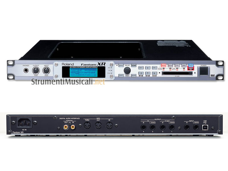 Fantom-XR offre tutta la potenza di sintesi e sampling dei modelli a tastiera nello spazio di 1 U rack. 128 MB di wave Rom per generare strumenti unici come uno straordinario timbro di grand piano 88. L'espandibilità con 6 schede SRX, l'interscambio di campioni via USB, l'espansione della sample memory fino a 528MB rendono il Fantom-XR uno dei più potenti sintetizzatori/campionatori a rack mai realizzato prima. La versione di software di sistema 2 consente il trattamento dei campioni in modo più completo e professionale ed offre nuove possibilità di editing via computer PC/MAC.