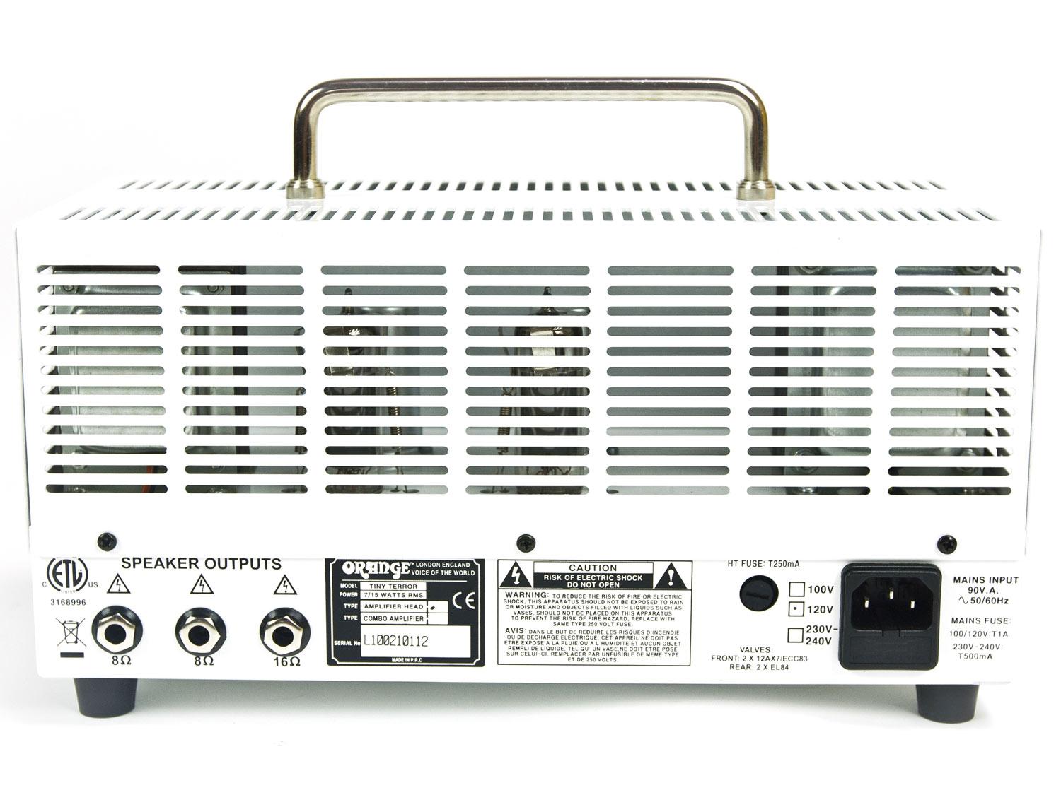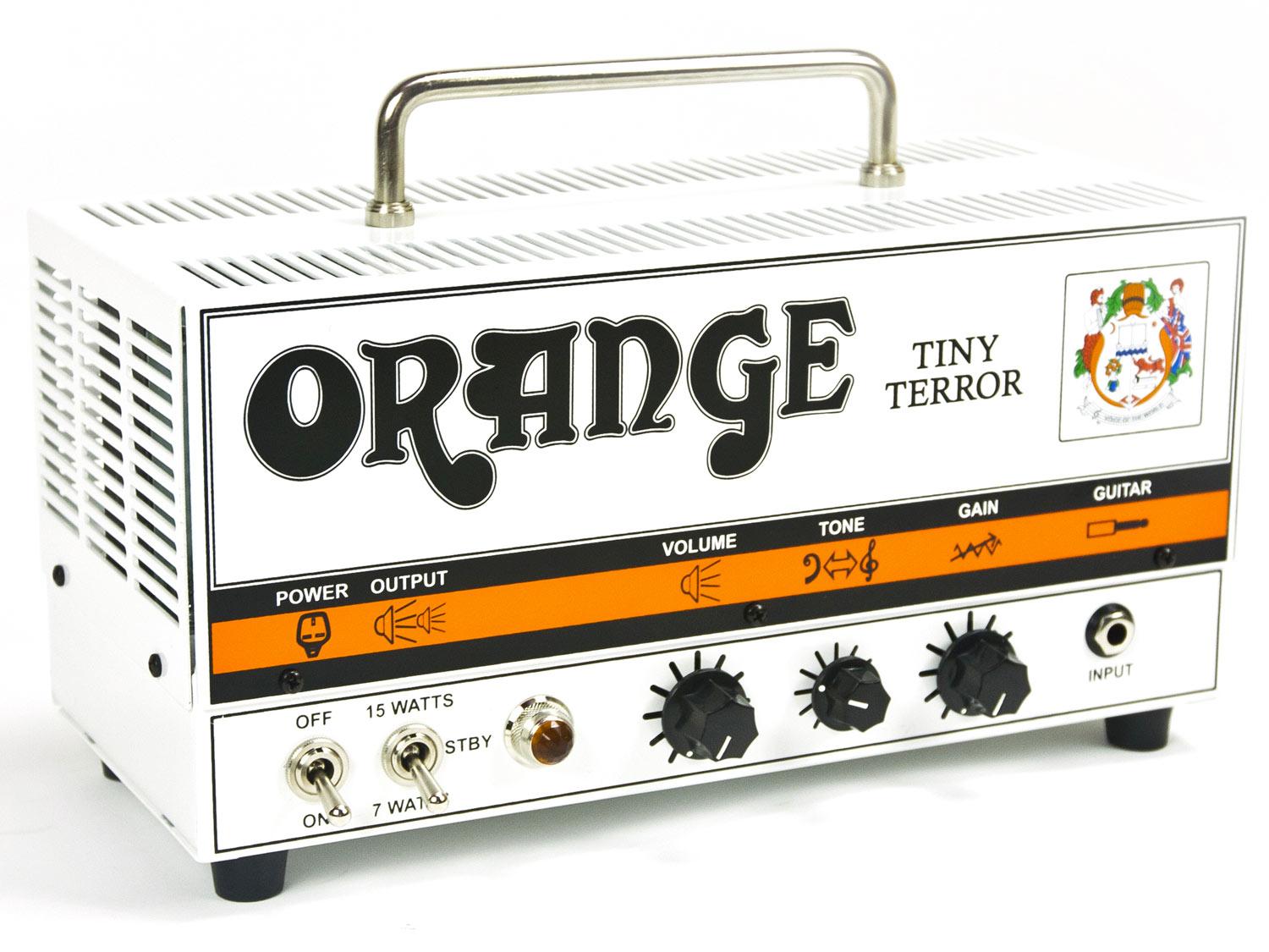 Il Tiny Terror è una testata per chitarra portatile interamente valvolare da 15 watt, caratterizzata da un preamplificatore unico a due stadi con una gamma timbrica enorme, usando solamente tre controlli. Quando viene spinto, questo piccolo ampli ha quasi lo stesso Gain della maggior parte dei canali lead a quattro stadi. Il Tiny Terror fa vergognare molti costosi amplificatori boutique con i suoi suoni da clean crunch sino ai suoni overdrive. Con il Gain a metà questa testata valvolare ha un carattere British vintage; il Tiny Terror è stato costruito secondo le stesse specifiche degli amplificatori Orange più grandi e la sua portabilità lo rende perfetto per fare concerti in città o per le prove.