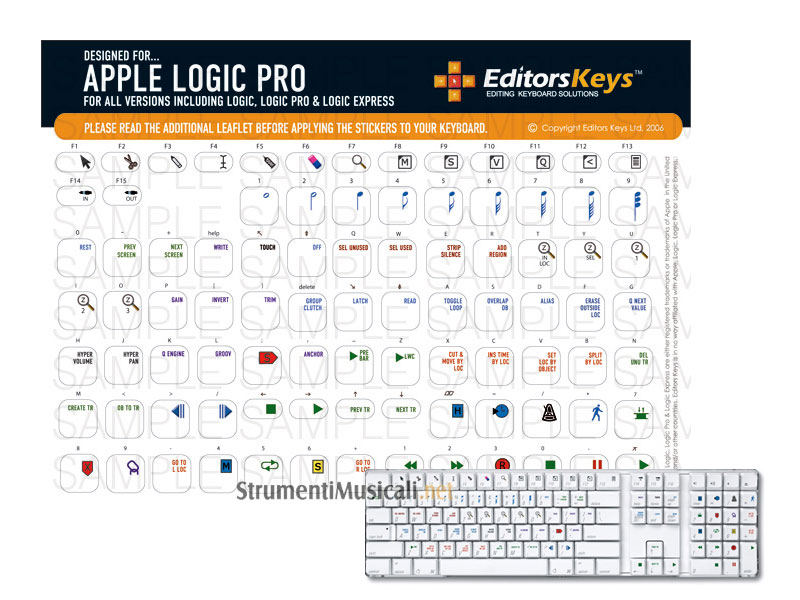 EDITORS KEYS Adesivi keyboard per Logic Pro / Express V 7