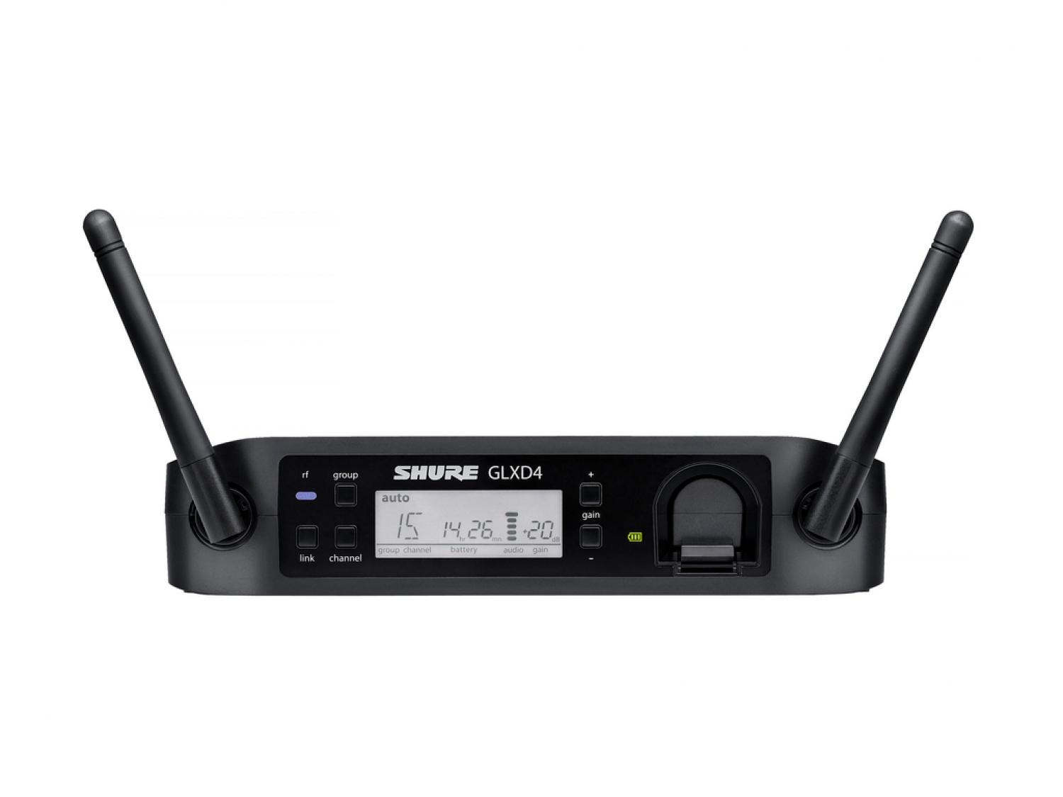 I rivoluzionari sistemi digitali wireless Shure GLX-D combinano una tecnologia di gestione automatica della frequenza all'avanguardia LINKFREQ con le migliori batterie ricaricabili agli ioni di litio della categoria, per definire il nuovo standard di funzionamento senza soluzione di continuità e di nitidezza audio digitale. Una porta di carica integrata può ricaricare una batteria agli ioni di litio di ricambio mentre il sistema è in uso. Inoltre sono in grado di far funzionare fino a 8 sistemi compatibili nella banda di frequenza di 2,4GHz.