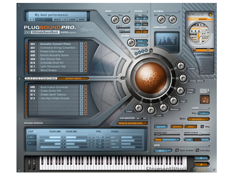 PLUGSOUND PRO è il primo programma che integra una gigantesca libreria sonora di 8 GB insieme ad una semplice ed efficace manipolazione dei groove e ad una potente gestione dei preset e delle performance.