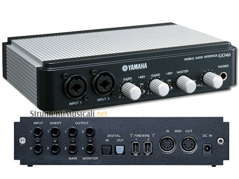 The Yamaha GO46 is a mobile audio solution that features high quality mic preamps and world-class MIDI and audio recording software enabling professional quality recording to a computer in a compact package that can be carried and used virtually anyway. The GO46 delivers 4-in/6-out multi-channel audio by simple one-cable FireWire (IEEE1394) connection to a computer. Analog input is handled by two combo mic/line terminals (for both XLR and phone jack) on the front panel and two phone jack input terminals on the rear. Four phone jack output terminals are provided on the rear panel plus digital input/output with S/P DIF optical connectors. The GO46 boasts up to 24-bit/192kHz resolution on the analog inputs/outputs and 24-bit/96kHz on the digital I/O. This pro-level quality makes the GO46 perfect for any type of recording, and allows you to capture the full details and nuances of the original source.