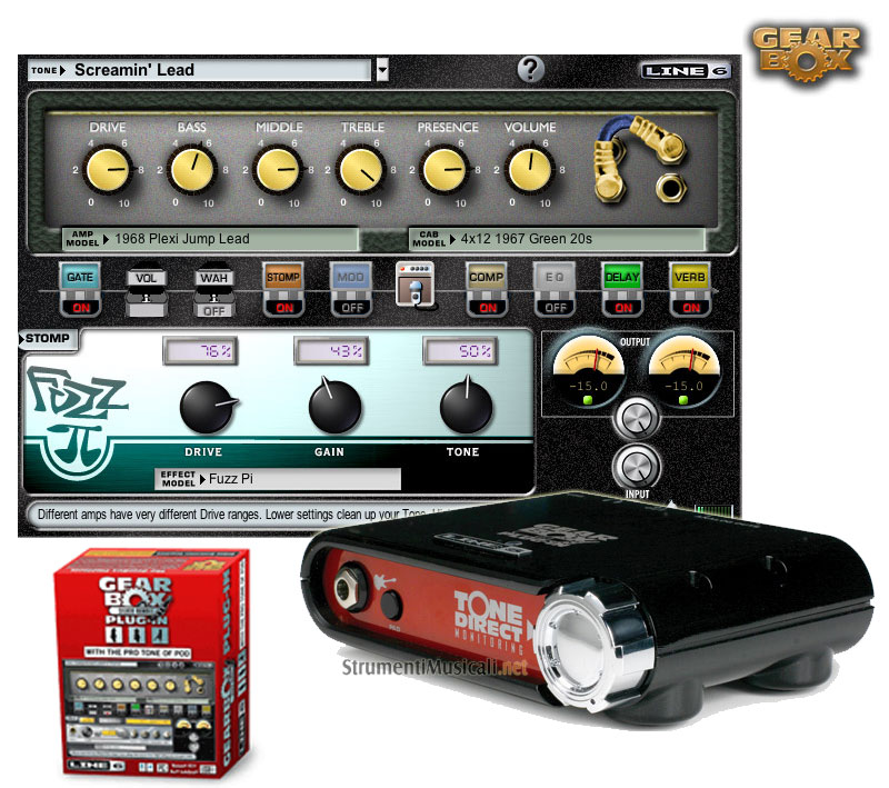 Si è alla ricerca di suono high gain crunch o di un suono pulito e morbido? GearBox Plug-in offre la soluzione adatta ad ogni stile e genere musicale. È possibile mixare e combinare amplificatori e cabinet, aggiungere stompbox ed effetti da studio ed eventualmente salvare il proprio setup per un successivo utilizzo. Tutti i modelli sono tratti dalla serie POD XT e Vetta II per avere le migliori emulazioni presenti sul mercato direttamente sul vostro computer.