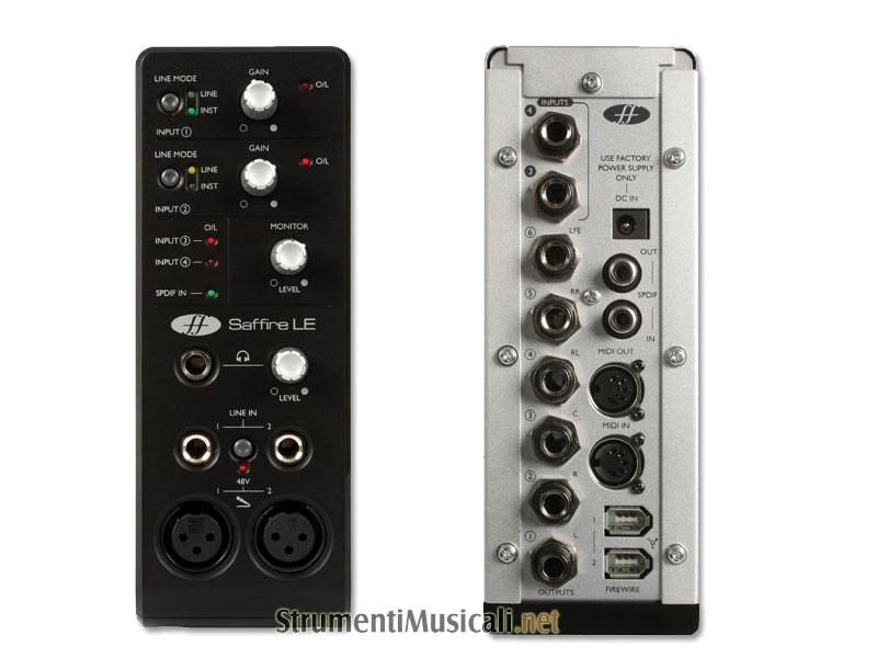 Six inputs and eight outputs (including stereo digital I/O) with comprehensive monitoring and i/o control options ensure the recording musician has plenty of options for tracking and monitoring high quality audio. Focusrite build and sound quality, intelligent front-end design and a one-click GUI solution combine to guarantee an intuitive and trouble-free professional recording experience. Although only the original Saffire has onboard DSP, the Saffire LE comes complete with the entire Saffire plug-in suite, offering highly acclaimed Compression, Reverb, Amp modeling and EQ in VST and AU formats. Furthermore, Saffire LE is bundled with a host of other software titles and audio samples, all included on the accompanying resources dvd. As with the original Saffire, input and output levels and latency-free monitoring solutions can all be controlled via the accompanying SaffireControl LE software. This stylish application floats comfortably over any recording software, and can shrink in size to suit a number of different recording scenarios. Together with expertly designed analogue inputs and unrivalled digital conversion, Saffire LE is the perfect solution for discerning recording musicians on a budget.