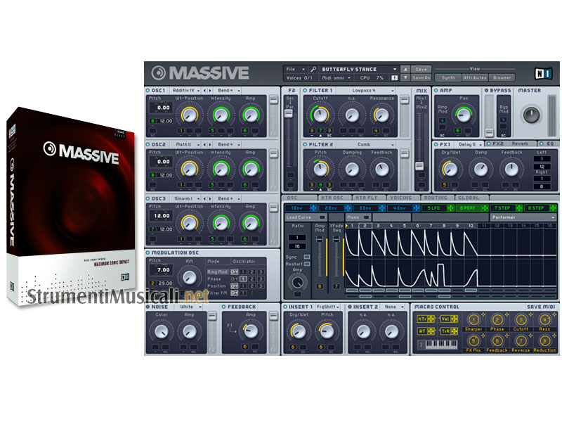 MASSIVE ha una serie di funzioni quali lo step-sequencer integrato, la sezione di modulazione ed effetti e tante altre caratteristiche che lo rendono particolarmente idoneo anche per le live-performance.