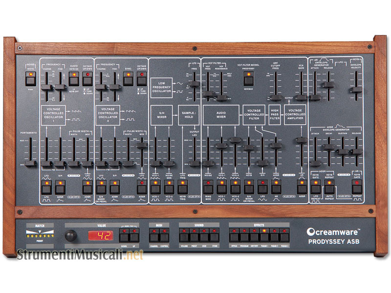 Sul mercato sono oramai presenti tante emulazioni di synth analogici quanti sono i granelli di sabbia in una spiaggia. Ma quante sono le emulazioni veramente fedeli? Dotati di un suono convincente e di carattere? Beh, sono molto rare e generalmente molto costose. Per dare realmente giustizia al suono di questi "mostri sacri" non è sufficiente avere filtri realistici, oscillatori dal suono potente, e curve d'inviluppo aggressive. Avete anche bisogno di controller hardware che vi permettano di tradurre immediatamente le vostre intuizioni in suono. Questo trasforma un software in uno strumento e fa si che vi possiate concentrare solo sul suono. Proprio l'immediata accessibilità ai principali parametri sonori è stata una delle chiavi del successo dei synth analogici, ma riservata a quei pochi che potevano permettersi un parco macchine dal costo non indifferente, o ai pochi fortunati che sono riusciti, anni dopo, a trovare alcune macchine in buone condizioni sul mercato dell'usato. Niente panico: ci ha pensato Creamware a riportare in vita le leggende del suono sintetizzato, così come erano state progettate dai loro creatori. Tutti gli strumenti della famiglia ASB, così come il Prodissey, sono progettati per soddisfare tutte queste esigenze: solidità, controllo ed un suono che è impossibile distinguere dall'originale.