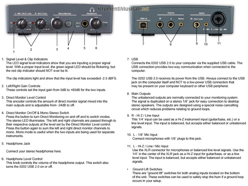 • Funziona anche con USB 1.1 ma in registrazione e playback le performance massime si riducono a 16bit e 44.1/48kHz