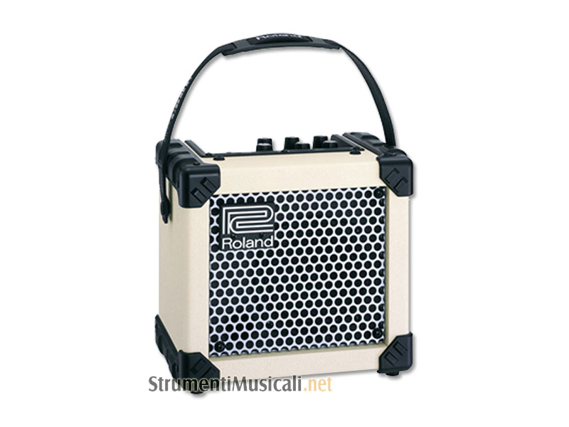 Il Micro CUBE Guitar Amplifier è il modello più compatto nella linea degli amplificatori Cube. Questo innovativo piccolo ampli portatile offre caratteristiche di tutto rispetto come modelli COSM di amplificatori e 6 effetti DSP di alta qualità, con speaker da 5" e 2W di output power. Inoltre può essere alimentato a batterie o con alimentatore per una portatitlità davvero completa. Grazie ai sette modelli COSM inclusi è possibile simulare diversi tipi di amplificatori tra cui il famoso Roland JC-120 Jazz Chorus. Ricordiamo che la tecnologia COSM è l' unica in grado di ricreare le sonorità degli amplificatori originali in ogni suo aspetto dal preamplificatore, ai circuiti, al tipo di speaker. Con il Micro-Cube non ci sarà bisogno neppure di portarsi dietro altri pedali o effetti. Tutto il necessario è già compreso nei 6 effetti DSP disponibili: dal chorus e flanging al phaser e tremolo effect. Una linea separata Delay/Reverb permette poi di aggiungere effetti dallo slapback fino ai long delays oppure reverb. E' incluso anche l'accordatore con la nuova funzione Digital Tuning Fork. Un ingresso Ausiliario nei formati 1/4-inch and 1/8-inch stereo consente il collegamento di unità esterne come CD player o altri strumenti di linea, è previsto inoltre un output cuffie adatto anche come line out per la registrazione diretta. Insomma un piccolo gioiellino davvero portatile e davvero completo.