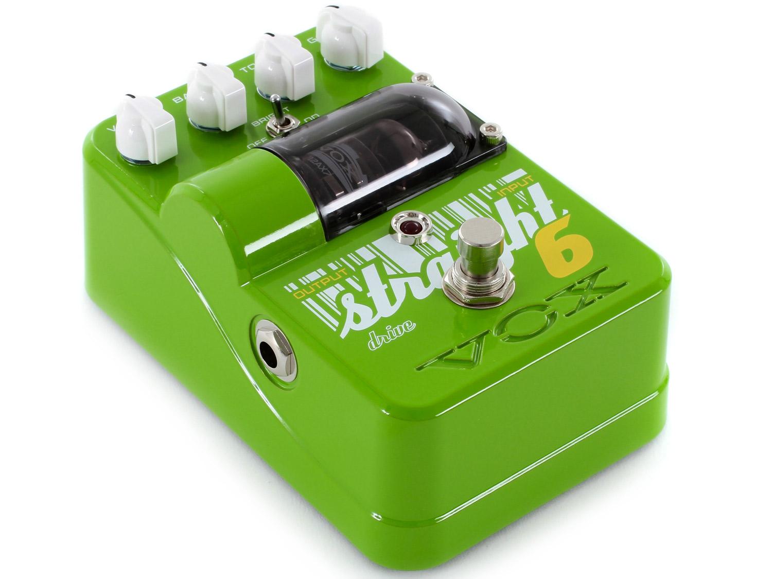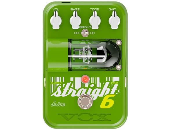 Straight 6 Drive sfrutta la tecnologia Hi-Volt recentemente sviluppata da VOX per fornire non solo il suono caldo che ci si aspetta da una valvola, ma anche il feeling e soprattutto la dinamica. Questo overdrive trabocca dell'ampia gamma dinamica della distorsione British di VOX. Attivando lo switch Bright vi darà un suono British frizzante con alti definiti, anche da una chitarra dotata di pickup humbucking. Si tratta di un overdrive all-around che è una scelta ideale per una ampia gamma di generi.