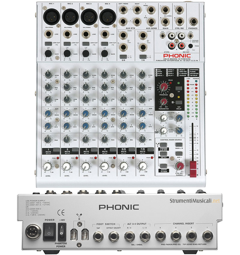 Gli HelixBoard Firewire non sono semplici mixer, ma dei sistemi che integrano una scheda audio Firewire multicanale a bassissima latenza compatibile con i sistemi operativi Windows XP e MacOS X, operante a 24-bit/96 kHz in un mixer audio ricco di funzioni professionali. Un prodotto perfettamente adeguato per le band che dispongono di una propria saletta prove, per i service audio, le sale prova e per gli studi di registrazione multitraccia. I mixer della serie HelixBoard Firewire dispongono del DFX, un multieffetto integrato a 24-bit, dotato di 16 effetti preset (delay, flanger, vari riverberi, distorsore, ecc.) che si prestano alle esigenze più diffuse. In dotazione viene fornito il kit per il montaggio a rack e la versione LE del famoso software Cubase.